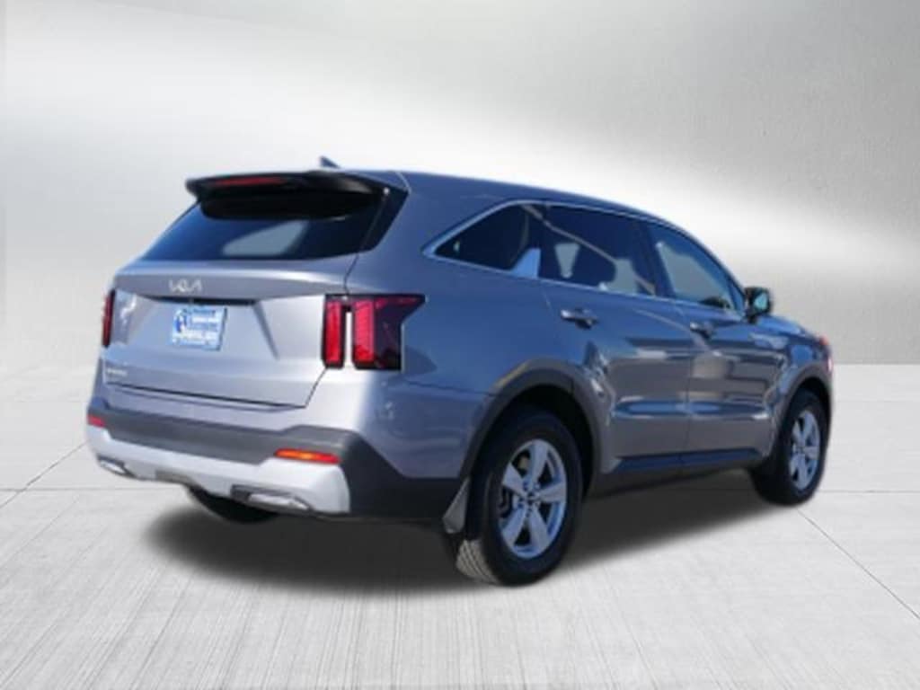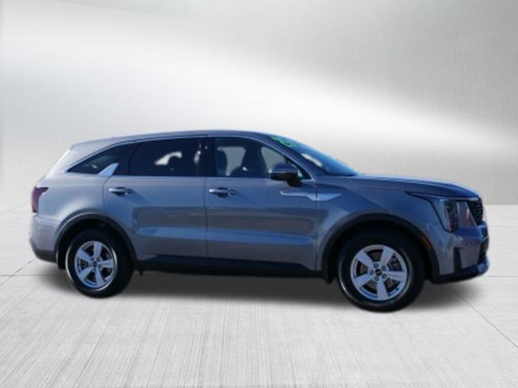Certified. Everlasting Silver 2025 Kia Sorento LX FWD 8-Speed Automatic 2.5L I4 DGI DOHC 16V LEV3-SULEV30 191hp Kia Certified Pre-Owned Certified, 17" Alloy Wheels, 3rd row seats: split-bench, 4-Wheel Disc Brakes, 6 Speakers, ABS brakes, Air Conditioning, Alloy wheels, AM/FM radio: SiriusXM, Apple CarPlay & Android Auto, Auto High-beam Headlights, Brake assist, Bumpers: body-color, Cargo Cover, Cargo Net, Cargo Tray, Carpeted Floor Mats, Cloth Seat Trim, Delay-off headlights, Driver door bin, Driver vanity mirror, Dual front impact airbags, Dual front side impact airbags, Electronic Stability Control, Emergency communication system: 911 Connect, Exterior Parking Camera Rear, Four wheel independent suspension, Front anti-roll bar, Front Bucket Seats, Front Center Armrest, Front reading lights, Fully automatic headlights, Heated door mirrors, Illuminated entry, Knee airbag, Low tire pressure warning, Mudguards, Occupant sensing airbag, Outside temperature display, Overhead airbag, Overhead console, Panic alarm, Passenger door bin, Passenger vanity mirror, Power door mirrors, Power steering, Power windows, Radio data system, Radio: AM/FM Standard Sound System, Rear anti-roll bar, Rear reading lights, Rear seat center armrest, Rear Seat Entertainment System, Rear side impact airbag, Rear window defroster, Rear window wiper, Remote keyless entry, Security system, Speed control, Speed-sensing steering, Split folding rear seat, Spoiler, Steering wheel mounted audio controls, Tachometer, Telescoping steering wheel, Tilt steering wheel, Traction control, Trip computer, Turn signal indicator mirrors, Variably intermittent wipers, and Wheel Locks.
