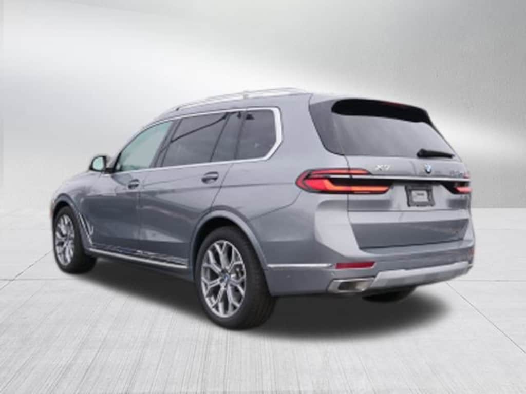 Black Sapphire Metallic 2025 BMW X7 xDrive40i Connected Package Pro, 10 Speakers, 3.64 Axle Ratio, 3rd row seats: split-bench, 4-Wheel Disc Brakes, ABS brakes, Adaptive suspension, Air Conditioning, Alloy wheels, AM/FM radio: SiriusXM with 360L, AM/FM Stereo, Apple CarPlay and Android Auto Compatibility, Apple CarPlay Compatibility, Auto High-beam Headlights, Auto tilt-away steering wheel, Auto-dimming door mirrors, Auto-dimming Rear-View mirror, Auto-leveling suspension, Automatic temperature control, BMW Assist ECall, BMW TeleServices, Brake assist, Bumpers: body-color, Compass, ConnectedDrive Services, Delay-off headlights, Driver door bin, Driver vanity mirror, Dual front impact airbags, Dual front side impact airbags, Electronic Stability Control, Emergency communication system: BMW Assist eCall, Exterior Parking Camera Rear, Four wheel independent suspension, Front anti-roll bar, Front Bucket Seats, Front Center Armrest, Front dual zone A/C, Front reading lights, Fully automatic headlights, Garage door transmitter, Genuine wood console insert, Genuine wood dashboard insert, Genuine wood door panel insert, Head restraints memory, Heads-Up Display, Heated door mirrors, Heated front seats, Heated Multi-Contour Seats, Heated steering wheel, Hi-Fi Sound System, Illuminated entry, Knee airbag, Leather steering wheel, Live Cockpit Pro, Low tire pressure warning, Memory seat, Navigation system: BMW Maps Navigation, Occupant sensing airbag, Outside temperature display, Overhead airbag, Panic alarm, Passenger door bin, Passenger vanity mirror, Personal ESIM 5G, Power adjustable front head restraints, Power door mirrors, Power driver seat, Power Front Seats, Power moonroof, Power passenger seat, Power steering, Power windows, Radio data system, Rain sensing wipers, Rear air conditioning, Rear anti-roll bar, Rear dual zone A/C, Rear reading lights, Rear seat center armrest, Rear window defroster, Rear window wiper, Reclining 3rd row seat, Remote keyless entry, Security system, Sensafin Upholstery, SiriusXM Satellite Radio, Speed control, Speed-sensing steering, Speed-Sensitive Wipers, Split folding rear seat, Spoiler, Sport steering wheel, Steering wheel memory, Steering wheel mounted audio controls, Tachometer, Telescoping steering wheel, Tilt steering wheel, Traction control, Trip computer, Turn signal indicator mirrors, Variably intermittent wipers, and Wireless Charging Device.
