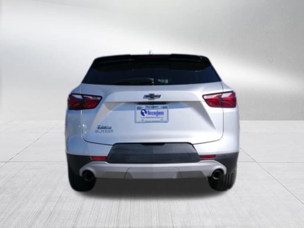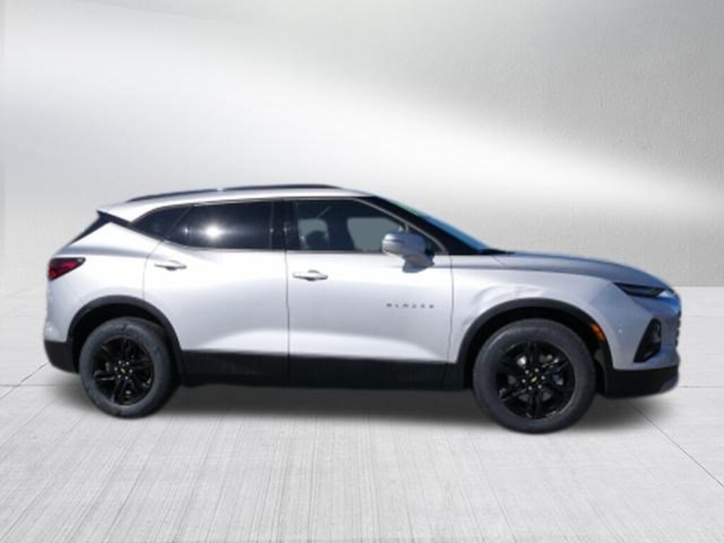 Silver Ice Metallic 2019 Chevrolet Blazer Base 2LT 3.6L V6 SIDI DOHC VVT 9-Speed Automatic FWD Convenience & Driver Confidence Package (Black Roof Rails, Heated Driver & Front Passenger Seats, Inside Rear-View Auto-Dimming Mirror, Lane Change Alert w/Side Blind Zone Alert, Outside Heated Power-Adjustable Body-Color Mirrors, Rear Cross Traffic Alert, Rear Park Assist w/Audible Warning, Rear Power Programmable Liftgate, Remote Vehicle Starter System, and Universal Home Remote), Preferred Equipment Group 2LT (155 Amp Alternator), 3.49 Final Drive Ratio, 4-Wheel Disc Brakes, 6 Speakers, 6-Speaker Audio System Feature, ABS brakes, Air Conditioning, Alloy wheels, AM/FM radio: SiriusXM, Apple CarPlay/Android Auto, Automatic temperature control, Brake assist, Bumpers: body-color, Child-Seat-Sensing Airbag, Compass, Delay-off headlights, Driver door bin, Driver vanity mirror, Dual front impact airbags, Dual front side impact airbags, Electronic Stability Control, Emergency communication system: OnStar and Chevrolet connected services capable, Four wheel independent suspension, Front anti-roll bar, Front Bucket Seats, Front Center Armrest, Front dual zone A/C, Front reading lights, Fully automatic headlights, Heated door mirrors, High-Intensity Discharge Headlights, Illuminated entry, Knee airbag, Leather Shift Knob, Low tire pressure warning, Occupant sensing airbag, Outside temperature display, Overhead airbag, Overhead console, Panic alarm, Passenger door bin, Passenger vanity mirror, Power door mirrors, Power driver seat, Power steering, Power windows, Premium Cloth Seat Trim, Radio data system, Radio: Chevrolet Infotainment 3 System, Rear anti-roll bar, Rear reading lights, Rear seat center armrest, Rear window defroster, Rear window wiper, Remote keyless entry, Ride & Handling Suspension, Security system, Speed control, Speed-sensing steering, Split folding rear seat, Spoiler, Steering wheel mounted audio controls, Tachometer, Telescoping steering wheel, Tilt steering wheel, Traction control, Trip computer, Variably intermittent wipers, Voltmeter, and Wheels: 18 Bright Silver Aluminum.