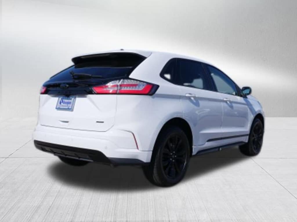 Oxford White 2023 Ford Edge SE AWD 8-Speed Automatic EcoBoost 2.0L I4 GTDi DOHC Turbocharged VCT Black Appearance Package (Black Badges, Black Grille & Surround, Black Mirror Caps, Black Painted Lower Bodyside Molding, Black Painted Skid Plate, Body-Color Front & Rear Bumpers, Rear Parking Sensors, and Wheels: 19" High-Gloss Black Painted Aluminum), Equipment Group 100A, AWD, 3.80 Axle Ratio, 4-Wheel Disc Brakes, 6 Speakers, ABS brakes, Air Conditioning, Alloy wheels, AM/FM radio: SiriusXM with 360L, Auto High-beam Headlights, Automatic temperature control, Brake assist, Bumpers: body-color, Cloth Bucket Seats, Compass, Delay-off headlights, Driver door bin, Driver vanity mirror, Dual front impact airbags, Dual front side impact airbags, Electronic Stability Control, Emergency communication system: SYNC 4 911 Assist, FordPass Connect, Four wheel independent suspension, Front anti-roll bar, Front Bucket Seats, Front Center Armrest w/Storage, Front dual zone A/C, Front reading lights, Fully automatic headlights, Illuminated entry, Knee airbag, Low tire pressure warning, Occupant sensing airbag, Outside temperature display, Overhead airbag, Overhead console, Panic alarm, Passenger door bin, Passenger vanity mirror, Power door mirrors, Power steering, Power windows, Radio: AM/FM Stereo/MP3 Capable, Rear anti-roll bar, Rear reading lights, Rear seat center armrest, Rear window defroster, Rear window wiper, Remote keyless entry, SiriusXM w/360L, Speed control, Speed-Sensitive Wipers, Split folding rear seat, Spoiler, Steering wheel mounted audio controls, SYNC 4A w/Enhanced Voice Recognition, Tachometer, Telescoping steering wheel, Tilt steering wheel, Traction control, Trip computer, Variably intermittent wipers, and Wheels: 18" Sparkle Silver-Painted Aluminum.
