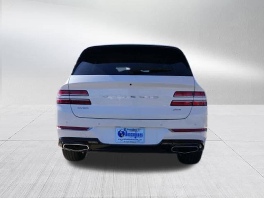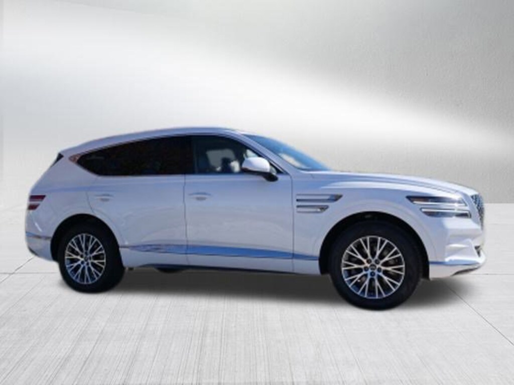Uyuni White 2024 Genesis GV80 2.5T Option Group 01, 12 Speakers, 4-Wheel Disc Brakes, 4.363 Axle Ratio, ABS brakes, Air Conditioning, Alloy wheels, AM/FM radio: SiriusXM, Android Auto & Apple CarPlay, Anti-whiplash front head restraints, Auto High-beam Headlights, Auto tilt-away steering wheel, Auto-dimming door mirrors, Auto-dimming Rear-View mirror, Auto-leveling suspension, Automatic temperature control, Brake assist, Bumpers: body-color, Compass, Delay-off headlights, Driver door bin, Driver vanity mirror, Dual front impact airbags, Dual front side impact airbags, Electronic Stability Control, Emergency communication system: Genesis Connected Services, Exterior Parking Camera Rear, Four wheel independent suspension, Front anti-roll bar, Front Bucket Seats, Front Center Armrest, Front dual zone A/C, Front reading lights, Fully automatic headlights, Garage door transmitter: HomeLink, Genuine wood console insert, Genuine wood dashboard insert, Genuine wood door panel insert, Heated door mirrors, Heated Front Bucket Seats, Heated front seats, Heated steering wheel, Illuminated entry, Knee airbag, Leather steering wheel, Leatherette Seating Surfaces, Low tire pressure warning, Memory seat, Navigation System, Occupant sensing airbag, Outside temperature display, Overhead airbag, Overhead console, Panic alarm, Passenger door bin, Passenger vanity mirror, Power door mirrors, Power driver seat, Power Liftgate, Power passenger seat, Power steering, Power windows, Radio data system, Radio:14.5" Navigation System w/AM/FM/HD Radio, Rain sensing wipers, Rear air conditioning, Rear anti-roll bar, Rear reading lights, Rear seat center armrest, Rear side impact airbag, Rear window defroster, Rear window wiper, Remote keyless entry, Security system, Speed control, Speed-sensing steering, Speed-Sensitive Wipers, Split folding rear seat, Spoiler, Steering wheel memory, Steering wheel mounted audio controls, Tachometer, Telescoping steering wheel, Tilt steering wheel, Traction control, Trip computer, Turn signal indicator mirrors, Variably intermittent wipers, and Wheels: 19" x 8.5J Medium Metallic Gray Alloy.