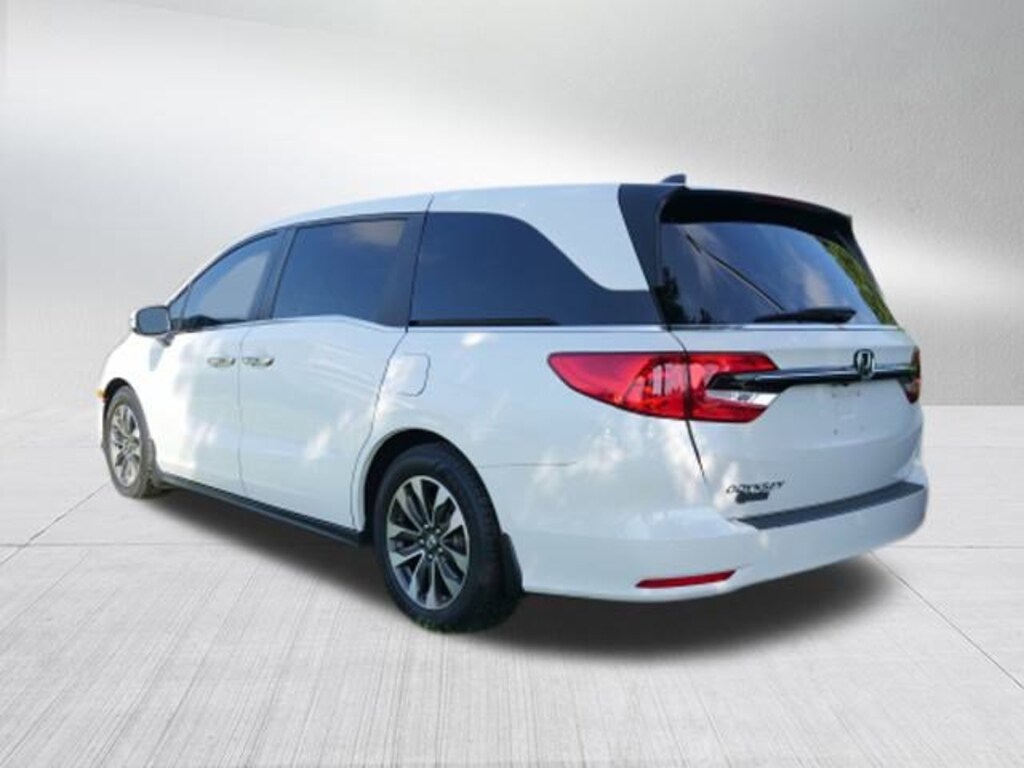 Recent Arrival! White 2021 Honda Odyssey EX-L 3.5L V6 SOHC i-VTEC 24V 10-Speed Automatic FWD 18 Machine-Finished Alloy Wheels, 3.61 Axle Ratio, 3rd row seats: split-bench, 4-Wheel Disc Brakes, 7 Speakers, A/V remote: CabinControl, ABS brakes, Adaptive Cruise Control: Adaptive Cruise Control (ACC) with Low-Speed Follow, Air Conditioning, Alloy wheels, AM/FM radio: SiriusXM, Anti-whiplash front head restraints, Apple CarPlay/Android Auto, Auto High-beam Headlights, Auto-dimming Rear-View mirror, Automatic temperature control, Blind Spot Information (BSI) System warning, Brake assist, Bumpers: body-color, Delay-off headlights, Driver door bin, Driver vanity mirror, Driver's Seat Mounted Armrest, Dual front impact airbags, Dual front side impact airbags, Electronic Stability Control, Exterior Parking Camera Rear, Forward collision: Collision Mitigation Braking System (CMBS) + FCW mitigation, Four wheel independent suspension, Front anti-roll bar, Front Bucket Seats, Front dual zone A/C, Front fog lights, Front reading lights, Fully automatic headlights, Garage door transmitter: HomeLink, Heated door mirrors, Heated Front Bucket Seats, Heated front seats, Illuminated entry, Knee airbag, Lane departure: Lane Keeping Assist System (LKAS) active, Leather Seat Trim, Leather steering wheel, Low tire pressure warning, Memory seat, Occupant sensing airbag, Outside temperature display, Overhead airbag, Overhead console, Panic alarm, Passenger door bin, Passenger seat mounted armrest, Passenger vanity mirror, Power door mirrors, Power driver seat, Power Liftgate, Power moonroof, Power passenger seat, Power steering, Power windows, Radio data system, Radio: 160-Watt AM/FM/HD/SiriusXM Audio System, Rear air conditioning, Rear anti-roll bar, Rear reading lights, Rear seat center armrest, Rear window defroster, Rear window wiper, Reclining 3rd row seat, Remote keyless entry, Security system, Speed control, Speed-sensing steering, Speed-Sensitive Wipers, Split folding rear seat, Spoiler, Steering wheel mounted audio controls, Tachometer, Telescoping steering wheel, Tilt steering wheel, Traction control, Trip computer, Turn signal indicator mirrors, and Variably intermittent wipers.