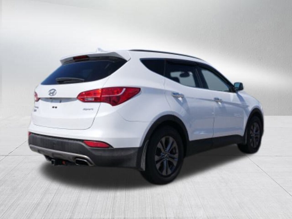 Frost White Pearl 2015 Hyundai Santa Fe Sport Base 2.4L I4 DGI DOHC 16V 6-Speed Automatic with Shiftronic FWD Option Group 03, Popular Equipment Package 02 (Automatic Headlight Control, Fog Lights, Heated Front Seats, Power Driver Seat w/4-Way Lumbar Control, Radio: AM/FM/CD/MP3/SiriusXM Audio System, Roof Side Rails, and Windshield Wiper De-Icer), Premium Package 03 (Auto-Dimming Interior Mirror w/Homelink/Compass, Blind Spot Detection (BSD) System, Dual Zone Automatic Temperature Control, Electroluminescent Gauge Cluster, Lane Change Assist, Leather Seating Surfaces, Leather Wrapped Steering Wheel & Shift Knob, Manual Rear Side Window Shades, Power Front Passenger Seat, Proximity Key Entry w/Push Button Start, Rear Cross-Traffic Alert, Side Mirror-Mounted Turn Signal Indicators, and Sliding second row seats w/cargo area releases), 17 x 7 Aluminum Alloy Wheels, 4-Wheel Disc Brakes, 6 Speakers, ABS brakes, Air Conditioning, Alloy wheels, AM/FM radio: SiriusXM, Axle Ratio 3.648, Brake assist, Bumper Applique, Bumpers: body-color, Cargo Net, Carpeted Cargo Mat, Carpeted Floor Mats, CD player, Driver door bin, Driver vanity mirror, Dual front impact airbags, Dual front side impact airbags, Electronic Stability Control, First Aid Kit, Four wheel independent suspension, Front anti-roll bar, Front Bucket Seats, Front Center Armrest, Front reading lights, Heated door mirrors, Illuminated entry, Knee airbag, Low tire pressure warning, Mudguards, Multi-Adjustable Bucket Seats, Occupant sensing airbag, Option Group 02, Outside temperature display, Overhead airbag, Overhead console, Panic alarm, Passenger door bin, Passenger vanity mirror, Power door mirrors, Power steering, Power windows, Radio: AM/FM/SiriusXM/CD/MP3 Audio System, Rear anti-roll bar, Rear seat center armrest, Rear window defroster, Rear window wiper, Remote keyless entry, Security system, Speed control, Speed-sensing steering, Split folding rear seat, Spoiler, Stain-Resistant Cloth Seating Surfaces, Steering wheel mounted audio controls, Tachometer, Telescoping steering wheel, Tilt steering wheel, Tow Hitch, Traction control, Trip computer, Variably intermittent wipers, and Wheel Locks.