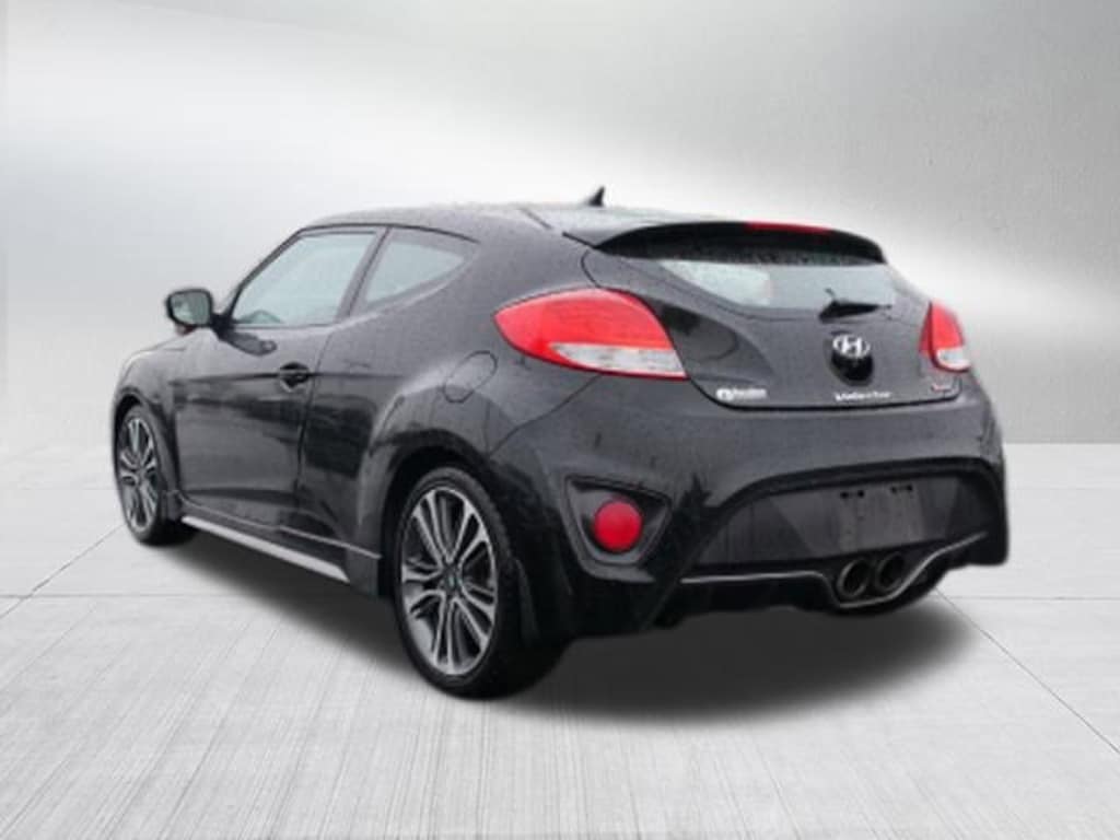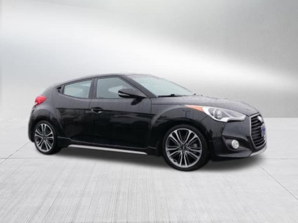 Ultra Black Pearl 2016 Hyundai Veloster Turbo Option Group 01, 18" x 7.5J Alloy w/Chrome Accents Wheels, 4-Wheel Disc Brakes, 8 Speakers, ABS brakes, Air Conditioning, Alloy wheels, AM/FM radio: SiriusXM, Brake assist, Bumpers: body-color, Cargo Net, Carpeted Floor Mats, CD player, Driver door bin, Driver vanity mirror, Dual front impact airbags, Dual front side impact airbags, Electronic Stability Control, Emergency communication system: Blue Link, Exterior Parking Camera Rear, Front anti-roll bar, Front Bucket Seats, Front Center Armrest w/Storage, Front fog lights, Front reading lights, Front wheel independent suspension, Heated door mirrors, Heated Front Bucket Sport Seats, Heated front seats, Illuminated entry, Leather Seating Surfaces, Leather Shift Knob, Leather steering wheel, Low tire pressure warning, Occupant sensing airbag, Outside temperature display, Overhead airbag, Overhead console, Panic alarm, Passenger door bin, Passenger vanity mirror, Power door mirrors, Power steering, Power windows, Radio: AM/FM/SiriusXM/CD/MP3 Dimension Premium, Rear anti-roll bar, Rear window defroster, Rear window wiper, Remote keyless entry, Security system, Speed control, Speed-sensing steering, Split folding rear seat, Spoiler, Steering wheel mounted audio controls, Tachometer, Telescoping steering wheel, Tilt steering wheel, Traction control, Trip computer, Turn signal indicator mirrors, and Variably intermittent wipers.