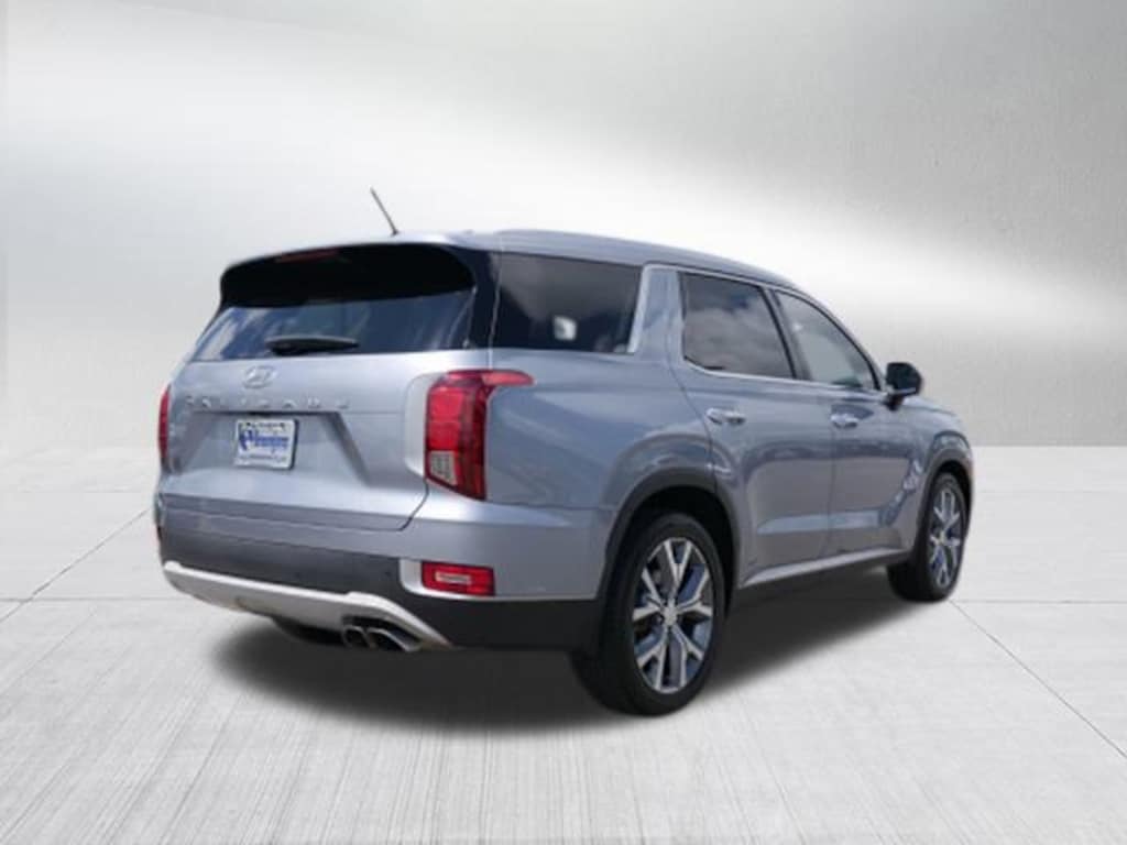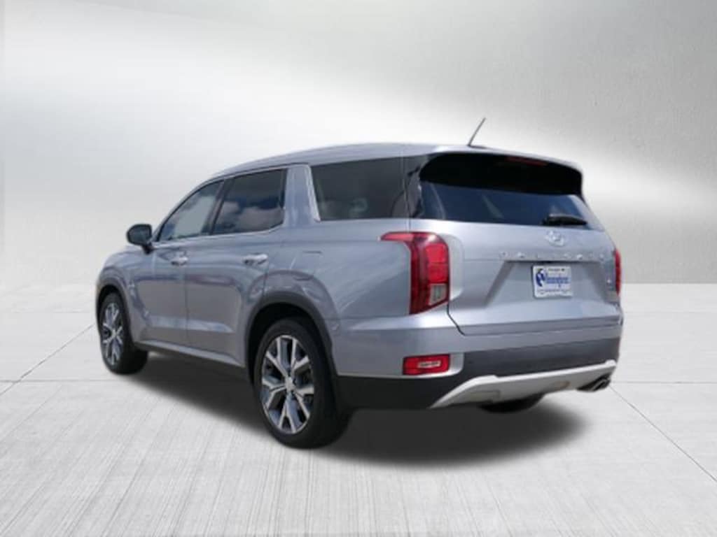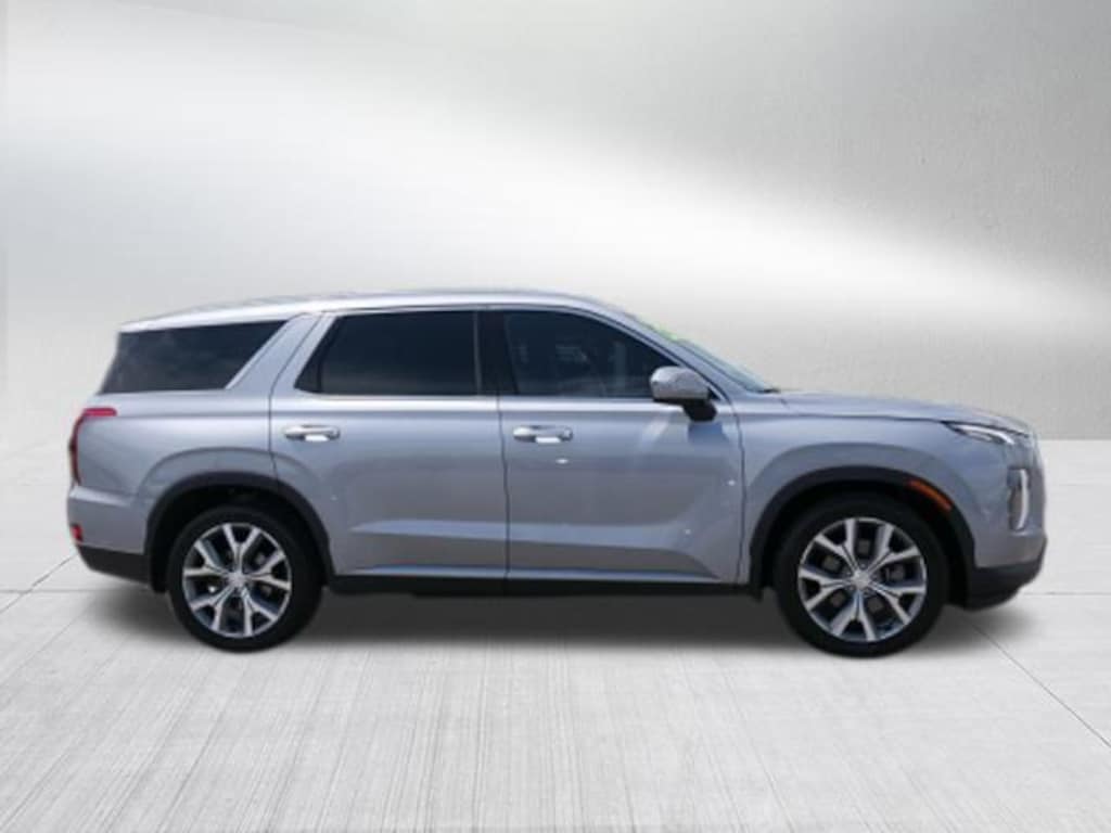 Lagoon Silver 2020 Hyundai Palisade SEL FWD 8-Speed Automatic with SHIFTRONIC V6 Convenience Package P2 (115-Volt AC Power Outlet, 3rd Row USB Outlets, 7" High Resolution Cluster Display, Auto Leveling Rear Suspension, Hands-Free Smart Liftgate w/Auto Open, LED Taillights, Parking Distance Warning - Forward, Rear Side Window Sunshades, Ultrasonic Rear Seat Occupant Minder, Wheels: 20"x 7.5J Split 5-Spoke Machined Alloy, and Wireless Phone Charger), Premium Package (Power Sunroof P5), Premium Package P3 (8-Way Power Adjustable Passenger Seat, Artificial Leather-Wrapped Dashboard, Bi-LED Headlights, Heated 2nd Row Seats, Heated Steering Wheel, Integrated Memory System, Leather Seat Trim, and Power 3rd Row Seating), 3.648 Axle Ratio, 3rd row seats: split-bench, 4-Wheel Disc Brakes, 6 Speakers, ABS brakes, Air Conditioning, Alloy wheels, AM/FM radio, Apple CarPlay & Android Auto, Auto High-beam Headlights, Auto-dimming Rear-View mirror, Automatic temperature control, Brake assist, Bumpers: body-color, Cargo Cover/Screen, Cargo Tray, Carpeted Floor Mats, Delay-off headlights, Driver door bin, Driver vanity mirror, Dual front impact airbags, Dual front side impact airbags, Electronic Stability Control, First Aid Kit, Four wheel independent suspension, Front anti-roll bar, Front Bucket Seats, Front Center Armrest, Front dual zone A/C, Front reading lights, Fully automatic headlights, Garage door transmitter: HomeLink, Heated door mirrors, Heated Front Bucket Seats, Heated front seats, Illuminated entry, Knee airbag, Low tire pressure warning, Mudguards, Occupant sensing airbag, Outside temperature display, Overhead airbag, Overhead console, Panic alarm, Passenger door bin, Passenger vanity mirror, Power door mirrors, Power driver seat, Power steering, Power windows, Radio data system, Radio: AM/FM/MP3 Display Audio, Rear air conditioning, Rear anti-roll bar, Rear window defroster, Rear window wiper, Reclining 3rd row seat, Remote keyless entry, Security system, Speed control, Speed-sensing steering, Split folding rear seat, Spoiler, Stain Resistant Cloth Seat Trim, Steering wheel mounted audio controls, Tachometer, Telescoping steering wheel, Tilt steering wheel, Traction control, Trip computer, Turn signal indicator mirrors, Variably intermittent wipers, and Wheels: 18" x 7.5J Machine Finish Alloy.