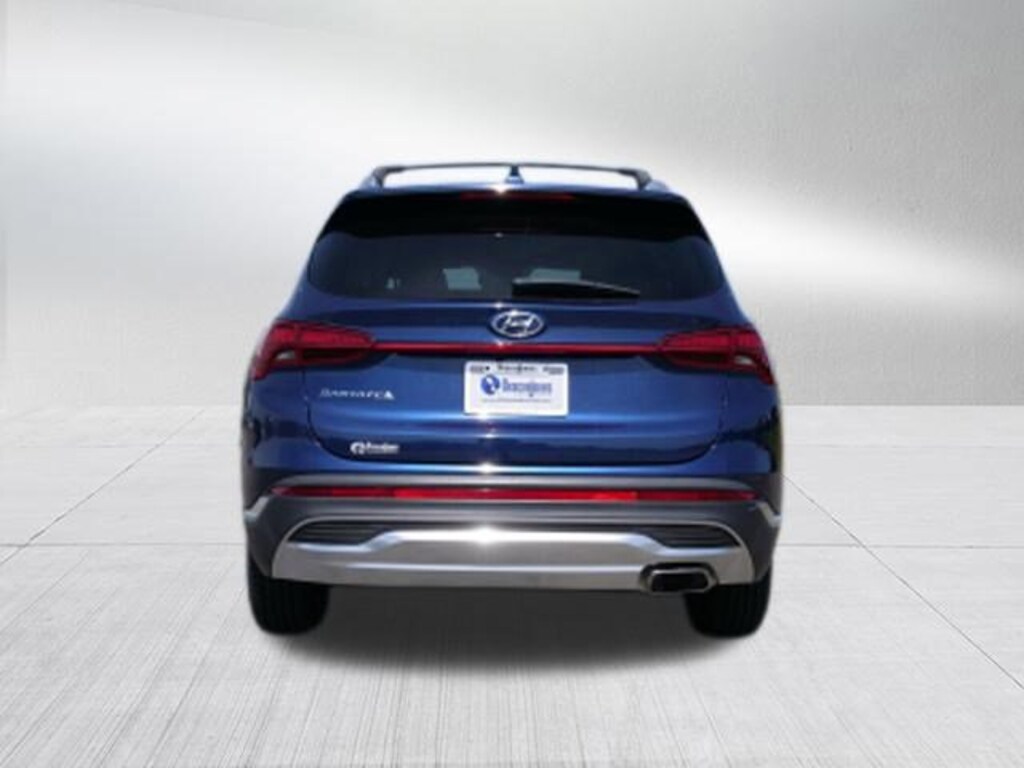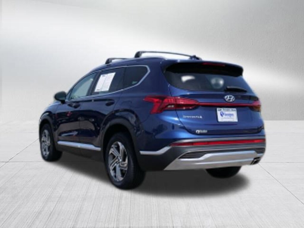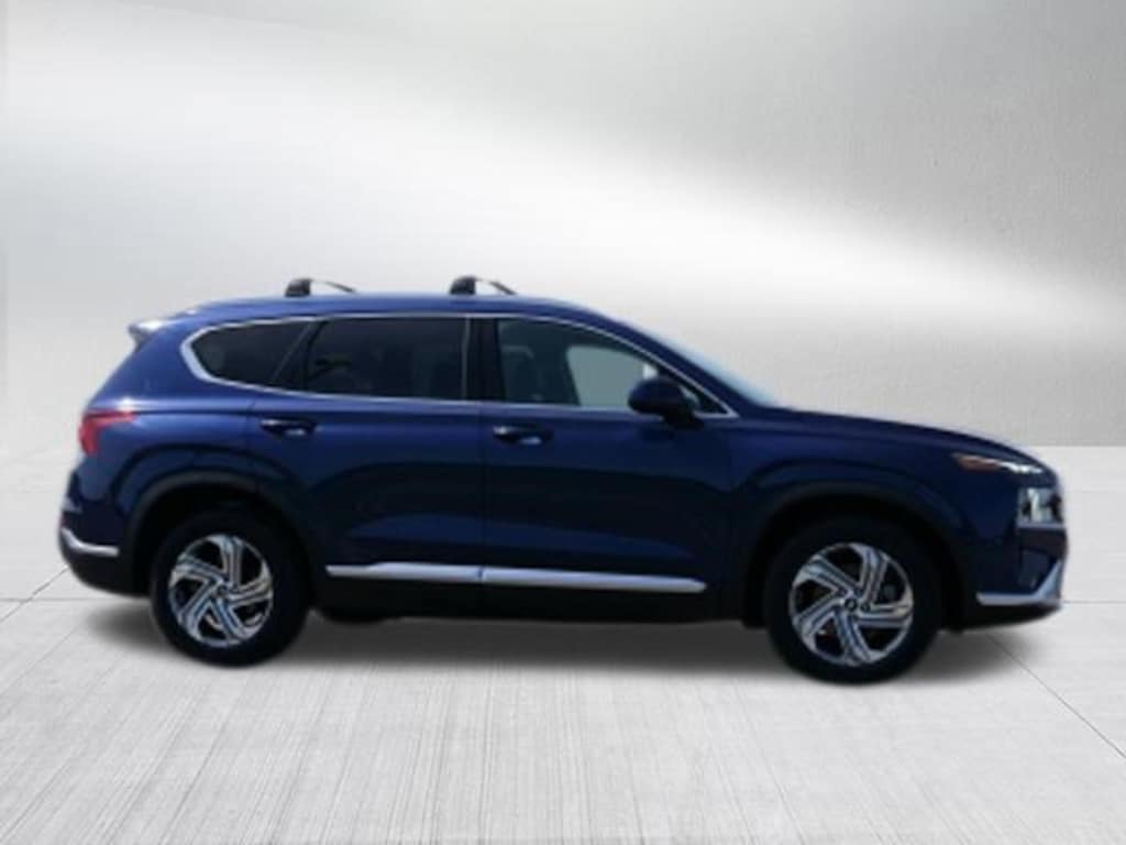 Stormy Blue 2022 Hyundai Santa Fe SEL Option Group 01, Gray Cloth, 18" x 7.5J Alloy Wheels, 4-Wheel Disc Brakes, 6 Speakers, ABS brakes, Air Conditioning, Alloy wheels, AM/FM radio: SiriusXM, Apple CarPlay & Android Auto, Auto High-beam Headlights, Axle Ratio: 3.798, Brake assist, Bumpers: body-color, Cargo Cover/Screen, Cargo Tray, Carpeted Floor Mats, Delay-off headlights, Driver door bin, Driver vanity mirror, Dual front impact airbags, Dual front side impact airbags, Electronic Stability Control, Emergency communication system, Exterior Parking Camera Rear, Four wheel independent suspension, Front anti-roll bar, Front Bucket Seats, Front Center Armrest, Front reading lights, Fully automatic headlights, Heated door mirrors, Heated Front Bucket Seats, Heated front seats, Illuminated entry, Low tire pressure warning, Occupant sensing airbag, Outside temperature display, Overhead airbag, Overhead console, Panic alarm, Passenger door bin, Passenger vanity mirror, Power door mirrors, Power driver seat, Power steering, Power windows, Radio: AM/FM Display Audio, Rear anti-roll bar, Rear seat center armrest, Rear window defroster, Rear window wiper, Remote keyless entry, Roof Rack Cross Bars, Security system, Speed control, Speed-sensing steering, Split folding rear seat, Spoiler, Steering wheel mounted audio controls, Tachometer, Telescoping steering wheel, Tilt steering wheel, Traction control, Trip computer, Variably intermittent wipers, and YES Essentials Stain-Resistant Cloth Seat Trim.