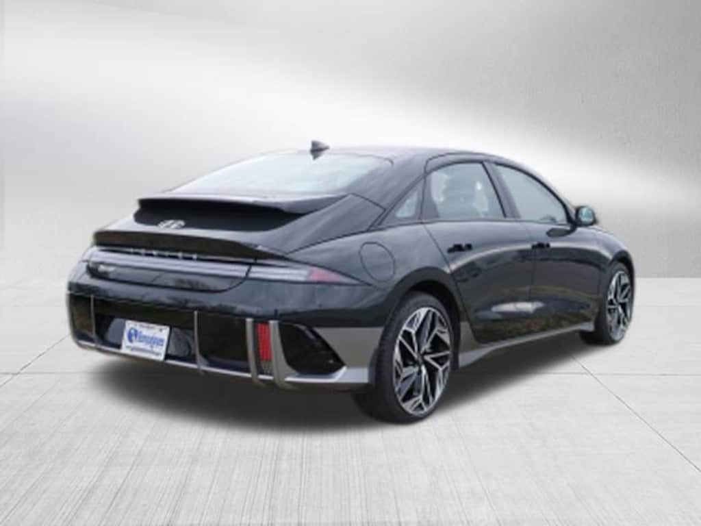 Digital Green 2023 Hyundai IONIQ 6 SEL Option Group 01, 4-Wheel Disc Brakes, 6 Speakers, ABS brakes, Air Conditioning, Alloy wheels, AM/FM radio: SiriusXM, Apple CarPlay & Android Auto, Auto High-beam Headlights, Auto-dimming Rear-View mirror, Automatic temperature control, Brake assist, Bumpers: body-color, Carpeted Floor Mats, Delay-off headlights, Driver door bin, Driver vanity mirror, Dual front impact airbags, Dual front side impact airbags, Electronic Stability Control, Emergency communication system: Blue Link Connected Car Service (3-year complimentary subscription), Envelope Cargo Net, First Aid Kit, Four wheel independent suspension, Front anti-roll bar, Front Bucket Seats, Front Center Armrest, Front dual zone A/C, Front reading lights, Fully automatic headlights, Garage door transmitter: HomeLink, H-Tex Leatherette Seating Surfaces, harman/kardon® Speakers, Heated door mirrors, Heated Front Bucket Seats, Heated front seats, Illuminated entry, Leather steering wheel, Low tire pressure warning, Mudguards, Navigation System, Occupant sensing airbag, Outside temperature display, Overhead airbag, Panic alarm, Passenger door bin, Passenger vanity mirror, Power door mirrors, Power driver seat, Power steering, Power windows, Radio: AM/FM/SiriusXM/HD Radio Audio System, Rear anti-roll bar, Rear Bumper Applique, Rear reading lights, Rear Reversible Cargo Tray, Rear seat center armrest, Rear window defroster, Remote keyless entry, Security system, Speed control, Speed-sensing steering, Split folding rear seat, Spoiler, Steering wheel mounted audio controls, Telescoping steering wheel, Tilt steering wheel, Traction control, Trip computer, Turn signal indicator mirrors, Variably intermittent wipers, and Wheels: 20 x 8.5J Alloy.