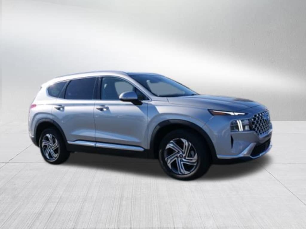 Recent Arrival! Shimmering Silver Pearl 2023 Hyundai Santa Fe SEL Premium Package (12.3" LCD Multi-Information Display, 8-Way Power Passenger Seat, Acoustic-Laminated Front Side Windows, Auto-Dimming Rear-View Mirror, Blind-Spot View Monitor, Chrome Front & Rear Bumper Accents, Chrome Interior Accents, H-Tex Leatherette Seat Trim, harman/kardon® Audio System, LED Interior Lights, LED Taillights, Manual Rear Side Sunshades, Option Group 02, Panoramic Sunroof, Power Release 2nd Row Seats, Silver Front Grille, and Surround View Monitor), Gray Artificial Leather, 18" x 7.5J Alloy Wheels, 4-Wheel Disc Brakes, 6 Speakers, ABS brakes, Air Conditioning, Alloy wheels, AM/FM radio: SiriusXM, Apple CarPlay & Android Auto, Auto High-beam Headlights, Automatic temperature control, Axle Ratio: 3.798, Brake assist, Bumper Applique, Bumpers: body-color, Cargo Cover/Screen, Cargo Net, Cargo Tray, Carpeted Floor Mats, Delay-off headlights, Driver door bin, Driver vanity mirror, Dual front impact airbags, Dual front side impact airbags, Electronic Stability Control, Emergency communication system, Exterior Parking Camera Rear, First Aid Kit, Four wheel independent suspension, Front anti-roll bar, Front Bucket Seats, Front Center Armrest, Front dual zone A/C, Front reading lights, Fully automatic headlights, Heated door mirrors, Heated Front Bucket Seats, Heated front seats, Illuminated entry, Leather steering wheel, Low tire pressure warning, Navigation System, Occupant sensing airbag, Outside temperature display, Overhead airbag, Overhead console, Panic alarm, Passenger door bin, Passenger vanity mirror, Power door mirrors, Power driver seat, Power Liftgate, Power steering, Power windows, Radio: AM/FM Display Audio, Rear anti-roll bar, Rear seat center armrest, Rear window defroster, Rear window wiper, Remote keyless entry, Roof Rack Crossbars, Security system, Speed control, Speed-sensing steering, Split folding rear seat, Spoiler, Stain-Resistant Cloth Seat Trim, Steering wheel mounted audio controls, Tachometer, Telescoping steering wheel, Tilt steering wheel, Traction control, Trip computer, Turn signal indicator mirrors, and Variably intermittent wipers.