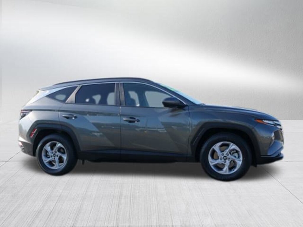 Amazon Gray 2023 Hyundai Tucson SEL FWD 8-Speed Automatic with SHIFTRONIC 2.5L I4 DGI DOHC 16V LEV3-ULEV70 187hp Option Group 01, 3.648 Axle Ratio, 4-Wheel Disc Brakes, 6 Speakers, ABS brakes, Air Conditioning, Alloy wheels, AM/FM radio: SiriusXM, Apple CarPlay & Android Auto, Auto High-beam Headlights, Brake assist, Bumpers: body-color, Delay-off headlights, Driver door bin, Driver vanity mirror, Dual front impact airbags, Dual front side impact airbags, Electronic Stability Control, Emergency communication system: Blue Link Connected Car Service (3-year complimentary subscription), Four wheel independent suspension, Front anti-roll bar, Front Bucket Seats, Front Center Armrest, Front reading lights, Fully automatic headlights, H-Tex Seat Trim, Heated door mirrors, Heated Front Bucket Seats, Heated front seats, Illuminated entry, Low tire pressure warning, Occupant sensing airbag, Outside temperature display, Overhead airbag, Overhead console, Panic alarm, Passenger door bin, Passenger vanity mirror, Power door mirrors, Power driver seat, Power Liftgate, Power steering, Power windows, Radio data system, Radio: AM/FM/HD/SiriusXM Audio System, Rear anti-roll bar, Rear seat center armrest, Rear window defroster, Rear window wiper, Remote keyless entry, Roof rack: rails only, Security system, Speed control, Split folding rear seat, Spoiler, Stain & Odor Resistant Cloth Seat Trim, Steering wheel mounted audio controls, Tachometer, Telescoping steering wheel, Tilt steering wheel, Traction control, Trip computer, Turn signal indicator mirrors, Variably intermittent wipers, and Wheels: 17" x 7.0J" Alloy.