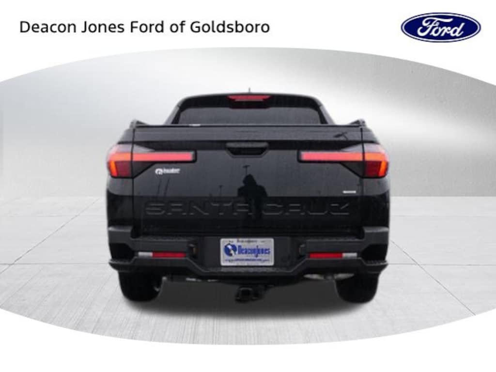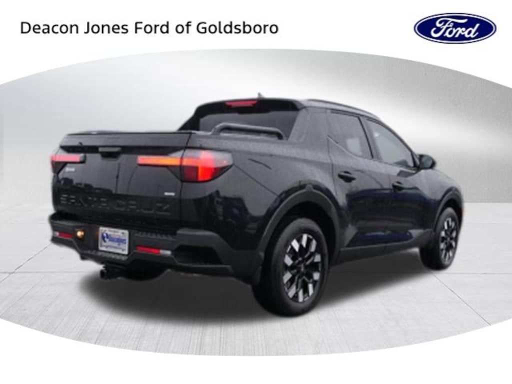 Phantom Black 2025 Hyundai Santa Cruz SEL AWD 2.5L I4 8-Speed Automatic with SHIFTRONIC Option Group 01, 18 x 7.5J Alloy Wheels, 4-Wheel Disc Brakes, 4.081 Axle Ratio, 6 Speakers, ABS brakes, Air Conditioning, All Season Fitted Liners, Alloy wheels, AM/FM radio: SiriusXM, Apple CarPlay & Android Auto, Auto High-beam Headlights, Auto-leveling suspension, Automatic temperature control, Bed Cargo Net, Brake assist, Bumpers: body-color, Compass, Delay-off headlights, Driver door bin, Driver vanity mirror, Dual front impact airbags, Dual front side impact airbags, Electronic Stability Control, Emergency communication system: Bluelink+, Exterior Parking Camera Rear, First Aid Kit, Four wheel independent suspension, Front anti-roll bar, Front Bucket Seats, Front Center Armrest, Front dual zone A/C, Front reading lights, Fully automatic headlights, H-Tex Leatherette Seat Trim, Heated door mirrors, Heated Front Bucket Seats, Heated front seats, Illuminated entry, Low tire pressure warning, Mud Guards, Occupant sensing airbag, Outside temperature display, Overhead airbag, Overhead console, Panic alarm, Passenger door bin, Passenger vanity mirror, Power door mirrors, Power driver seat, Power steering, Power windows, Radio data system, Radio: AM/FM/HD Audio System, Rear anti-roll bar, Rear reading lights, Rear seat center armrest, Rear side impact airbag, Rear step bumper, Rear window defroster, Remote keyless entry, Security system, Speed control, Speed-sensing steering, Split folding rear seat, Spoiler, Steering wheel mounted audio controls, Tachometer, Telescoping steering wheel, Tilt steering wheel, Traction control, Trip computer, Turn signal indicator mirrors, Variably intermittent wipers, and Wheel Locks.