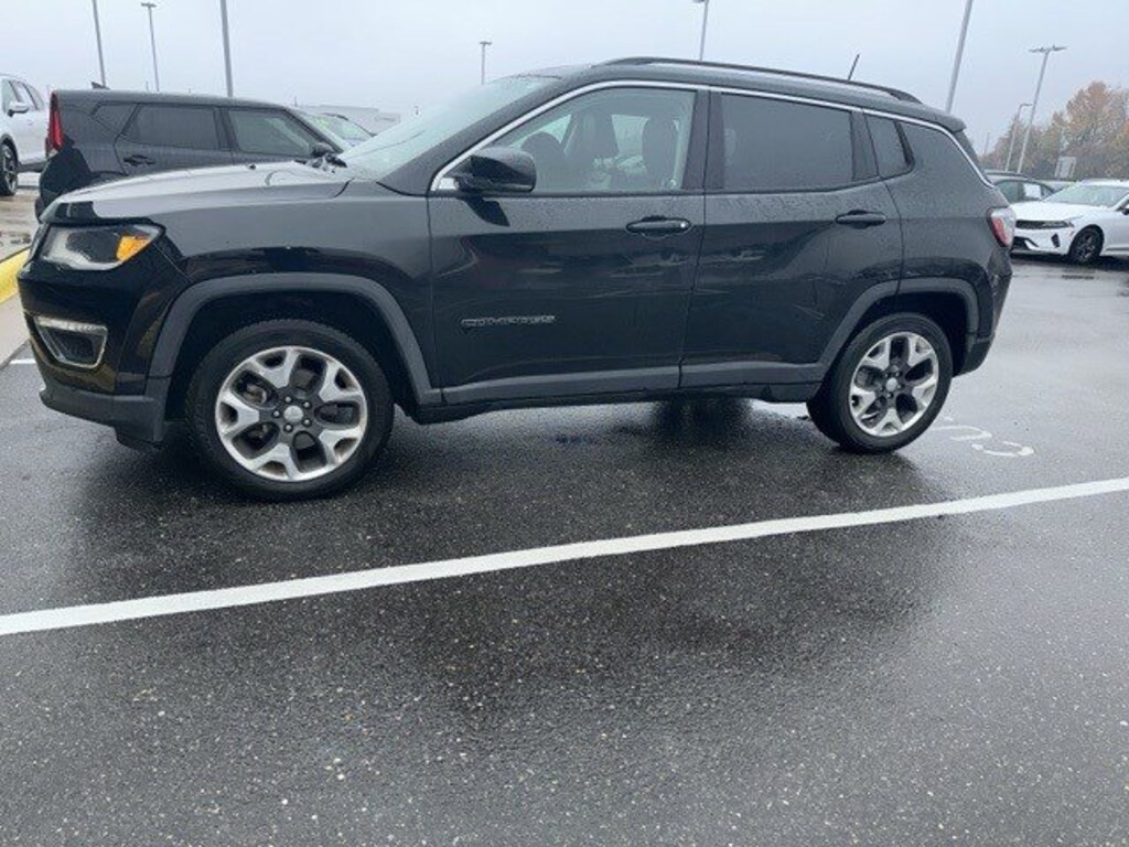 Diamond Black Crystal Pearlcoat 2018 Jeep Compass Limited 4WD 9-Speed Automatic 2.4L I4 Advanced Safety & Lighting Group (Auto High Beam Headlamp Control, Bi-Xenon HID Headlamps w/LED Signature, Full Speed FWD Collision Warn Plus, Lane Departure Warning Plus, and LED Taillamps), Navigation Group (GPS Navigation and Radio: Uconnect 4C Nav w/8.4" Display), Quick Order Package 27G, Safe & Security Group (Blind Spot & Cross Path Detection, ParkSense Rear Park Assist System, and Rain Sensitive/Intermittent Wipers), 4WD, 3.73 Axle Ratio, 4-Wheel Disc Brakes, 6 Speakers, ABS brakes, Air Conditioning, Alloy wheels, AM/FM radio: SiriusXM, Anti-whiplash front head restraints, Apple CarPlay/Android Auto, Auto-dimming Rear-View mirror, Automatic temperature control, Brake assist, Bumpers: body-color, Compass, Delay-off headlights, Driver door bin, Driver vanity mirror, Dual front impact airbags, Dual front side impact airbags, Electronic Stability Control, Four wheel independent suspension, Front anti-roll bar, Front Bucket Seats, Front Center Armrest w/Storage, Front dual zone A/C, Front fog lights, Front reading lights, Fully automatic headlights, Heated door mirrors, Heated front seats, Heated steering wheel, Illuminated entry, Knee airbag, Leather Shift Knob, Leather Trimmed Bucket Seats, Low tire pressure warning, Manufacturer's Statement of Origin, Occupant sensing airbag, Outside temperature display, Overhead airbag, Overhead console, Panic alarm, ParkView Rear Back-Up Camera, Passenger door bin, Passenger vanity mirror, Power door mirrors, Power driver seat, Power steering, Power windows, Radio: Uconnect 4 w/8.4" Display, Rear anti-roll bar, Rear seat center armrest, Rear window defroster, Rear window wiper, Remote keyless entry, Roof rack: rails only, Security system, Speed control, Split folding rear seat, Spoiler, Steering wheel mounted audio controls, Tachometer, Telescoping steering wheel, Tilt steering wheel, Traction control, Trip computer, Turn signal indicator mirrors, Variably intermittent wipers, and Wheels: 18" x 7.0" Polished/Gray Pockets Aluminum.