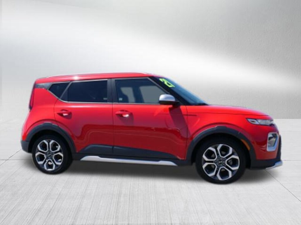 Inferno Red 2021 Kia Soul X-Line FWD CVT 2.0L I4 MPI DOHC 16V LEV3-SULEV30 147hp 4-Wheel Disc Brakes, 6 Speakers, ABS brakes, Air Conditioning, Alloy wheels, AM/FM radio, Apple CarPlay & Android Auto, Brake assist, Bumpers: body-color, Carpeted Floor Mats, Cloth Seat Trim, Delay-off headlights, Driver door bin, Driver vanity mirror, Dual front impact airbags, Dual front side impact airbags, Electronic Stability Control, Exterior Parking Camera Rear, Front anti-roll bar, Front Bucket Seats, Front Center Armrest, Front fog lights, Front reading lights, Front wheel independent suspension, Fully automatic headlights, Leather Shift Knob, Leather steering wheel, Low tire pressure warning, Occupant sensing airbag, Outside temperature display, Overhead airbag, Overhead console, Passenger door bin, Passenger vanity mirror, Power door mirrors, Power steering, Power windows, Radio: AM/FM/MP3 Audio System, Rear window defroster, Rear window wiper, Remote keyless entry, Speed control, Speed-sensing steering, Split folding rear seat, Steering wheel mounted audio controls, Tachometer, Telescoping steering wheel, Tilt steering wheel, Traction control, Trip computer, Variably intermittent wipers, and Wheels: 18" x 7.5 Alloy.