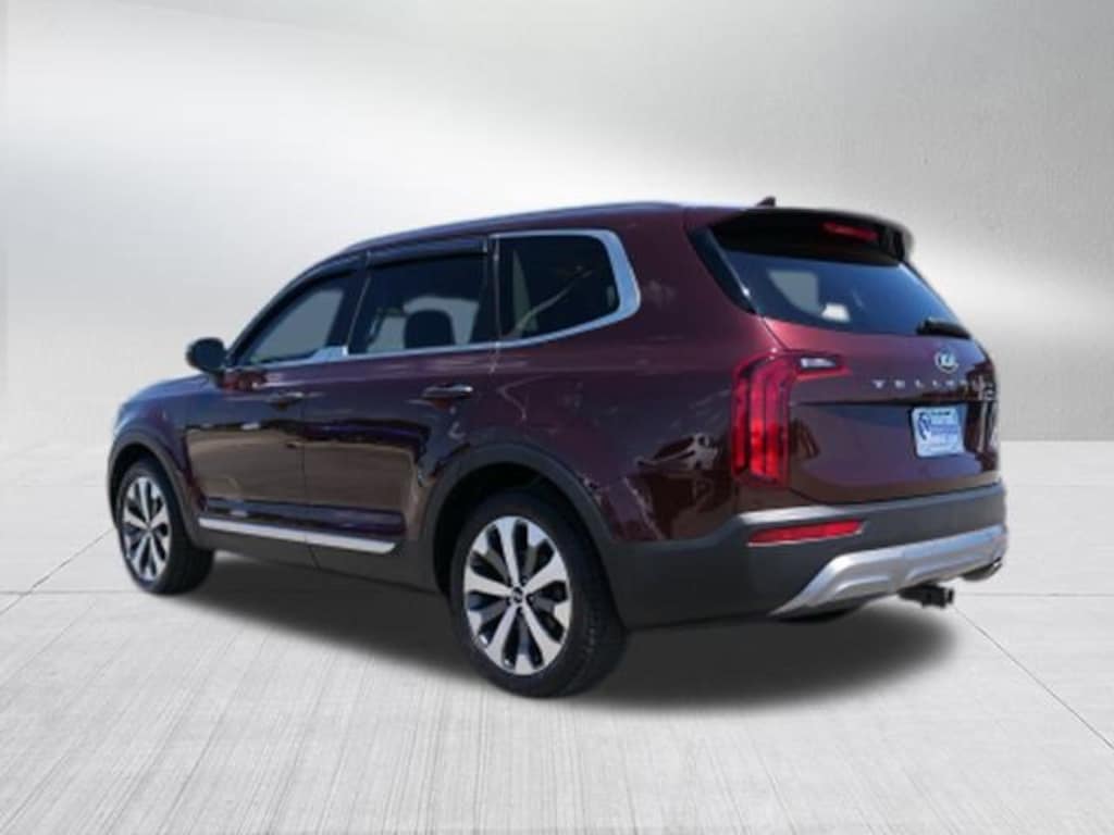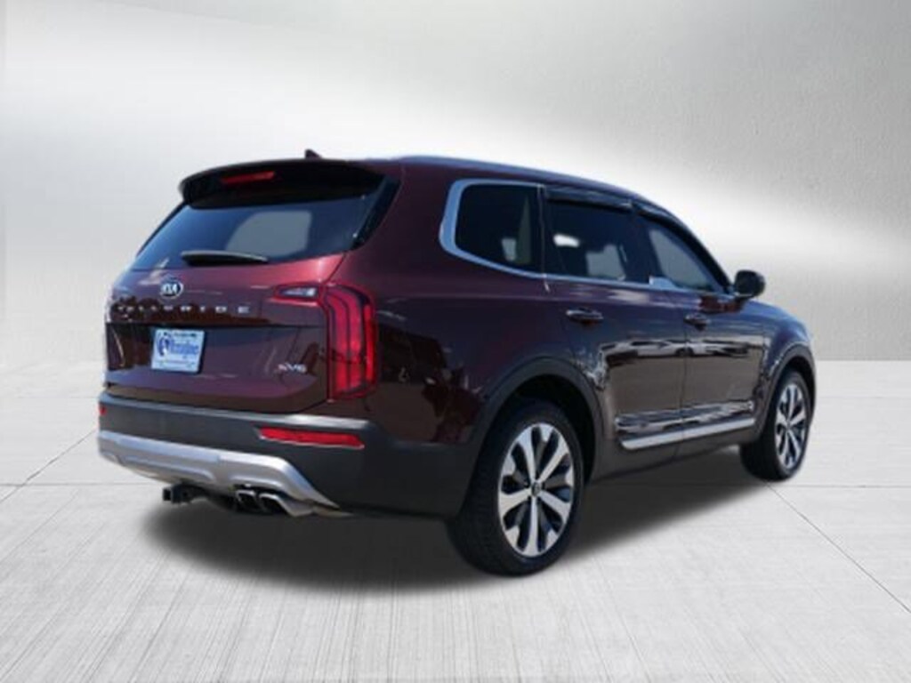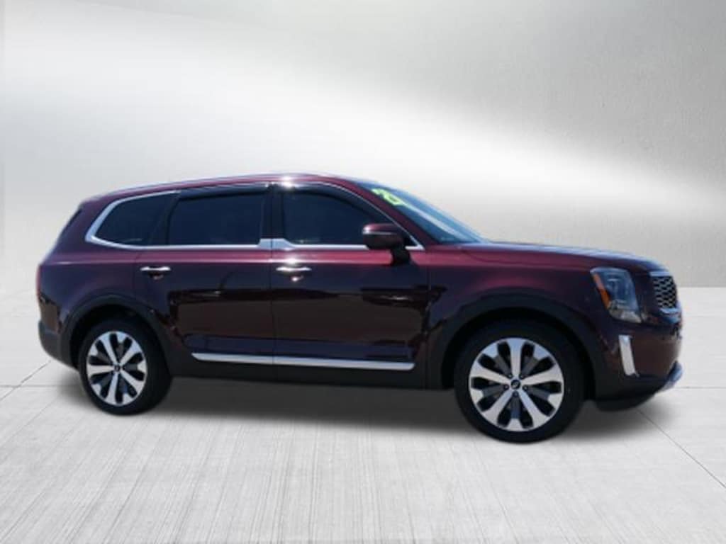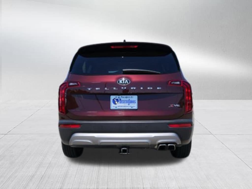 Sangria 2021 Kia Telluride S FWD 8-Speed Automatic 3.8L V6 DGI DOHC Dual CVVT 3.648 Axle Ratio, 3rd row seats: split-bench, 4-Wheel Disc Brakes, 6 Speakers, ABS brakes, Air Conditioning, Alloy wheels, AM/FM radio: SiriusXM, Apple CarPlay & Android Auto, Brake assist, Bumpers: body-color, Carpeted Floor Mats, Delay-off headlights, Driver door bin, Driver vanity mirror, Dual front impact airbags, Dual front side impact airbags, Electronic Stability Control, Emergency communication system: 911 Connect, Four wheel independent suspension, Front anti-roll bar, Front Bucket Seats, Front Center Armrest, Front reading lights, Fully automatic headlights, Heated door mirrors, Heated Front Bucket Seats, Heated front seats, Illuminated entry, Knee airbag, Leather Shift Knob, Leather steering wheel, Low tire pressure warning, Occupant sensing airbag, Outside temperature display, Overhead airbag, Overhead console, Panic alarm, Passenger door bin, Passenger vanity mirror, Power door mirrors, Power driver seat, Power moonroof, Power steering, Power windows, Radio data system, Radio: AM/FM/SIRIUS Display Audio, Rear air conditioning, Rear anti-roll bar, Rear reading lights, Rear window defroster, Rear window wiper, Reclining 3rd row seat, Remote keyless entry, Roof rack: rails only, Security system, Smart Key w/ Push Button and Remote Start, SOFINO Leathertte Seat Trim, Speed control, Speed-sensing steering, Split folding rear seat, Spoiler, Steering wheel mounted audio controls, Tachometer, Telescoping steering wheel, Tilt steering wheel, Traction control, Trip computer, Turn signal indicator mirrors, Variably intermittent wipers, and Wheels: 7.5" x 20" Machined Finish Alloy.