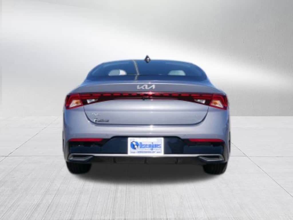 Everlasting Silver 2022 Kia K5 EX I4 8-Speed Automatic FWD EX Ash Blue Color Package, EX Premium Package (10-Way Power Passenger Seat, Active Sound Design, Auto Up/Down Rear Windows, Bose Premium Audio, Forward Collision Avoidance-Assist - Cyclist, Forward Collision Avoidance-Assist - Junction Turn, Heated Steering Wheel, LED Rear Combi Lamps, Memory Driver's Seat & Outside Mirrors, Navigation-Based Smart Cruise Control - Curve, Outside Mirrors w/LED Turn Signals, Parking Collision Avoidance-Assist - Reverse, Parking Distance Warning - Forward, Power Child Lock, Power Folding Outside Mirrors, Safe Exit Assist w/Lock, Smart Cruise Control w/Stop & Go, and Surround View Monitor), 4-Wheel Disc Brakes, 6 Speakers, ABS brakes, Air Conditioning, Alloy wheels, AM/FM radio: SiriusXM, Apple CarPlay & Android Auto, Auto High-beam Headlights, Automatic temperature control, Brake assist, Bumpers: body-color, Cargo Mat, Carpeted Floor Mats, Delay-off headlights, Driver door bin, Driver vanity mirror, Dual front impact airbags, Dual front side impact airbags, Electronic Stability Control, Emergency communication system, Four wheel independent suspension, Front anti-roll bar, Front Bucket Seats, Front Center Armrest, Front dual zone A/C, Front reading lights, Fully automatic headlights, Heated & Ventilated Front Bucket Seats, Heated door mirrors, Heated front seats, Illuminated entry, Knee airbag, Leatherette Seat Trim, Low tire pressure warning, Navigation System, Occupant sensing airbag, Outside temperature display, Overhead airbag, Overhead console, Panic alarm, Passenger door bin, Passenger vanity mirror, Power door mirrors, Power driver seat, Power moonroof, Power steering, Power windows, Radio data system, Radio: AM/FM/MP3 Audio System, Rear anti-roll bar, Rear reading lights, Rear seat center armrest, Rear side impact airbag, Rear window defroster, Remote keyless entry, Security system, Smart Key w/ Push Button and Remote Start, Speed control, Speed-sensing steering, Split folding rear seat, Steering wheel mounted audio controls, Tachometer, Telescoping steering wheel, Tilt steering wheel, Traction control, Trip computer, Variably intermittent wipers, Ventilated front seats, and Wheels: 7.5J x 18 Gray Machined Finish Alloy.