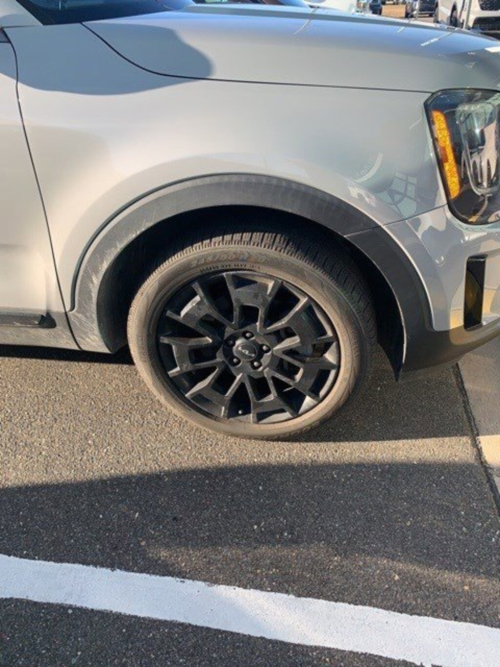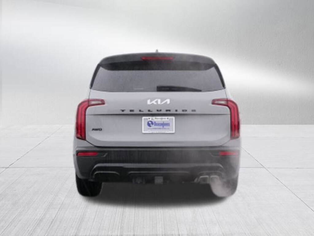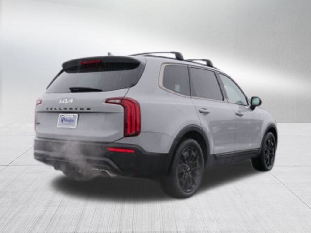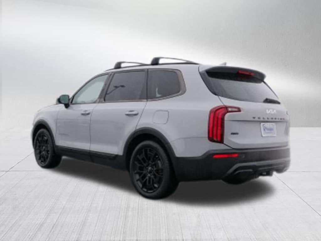 Wolf Gray 2022 Kia Telluride EX AWD 8-Speed Automatic 3.8L V6 DOHC EX Premium Package (20" x 7.5" Machined Alloy Wheels, 2nd Row Captain Chairs, LED Headlamps, and Satin Chrome Roof Rails), Nightfall Edition Package (Black Finish Radiator Grille, Exclusive Black Headlight Bezels, Front & Rear Gloss Black Finish Bumper Skid Plates, Gloss Black Finish Exterior Emblems, Gloss Black Finish Front & Rear Door Garnish, Gloss Black Finish Roof Rails, and Wheels: 20" x 7.5" Exclusive Black Alloy), Towing Package (Self Leveling Rear Suspension and Tow Hitch w/Harness (TOF)), 3.648 Axle Ratio, 3rd row seats: split-bench, 4-Wheel Disc Brakes, 6 Speakers, ABS brakes, Air Conditioning, Alloy wheels, AM/FM radio: SiriusXM, Apple CarPlay & Android Auto, Auto-dimming Rear-View mirror, Automatic temperature control, Brake assist, Bumpers: body-color, Carpeted Floor Mats, Compass, Cross Bars, Delay-off headlights, Driver door bin, Driver vanity mirror, Dual front impact airbags, Dual front side impact airbags, Electronic Stability Control, Emergency communication system: 911 Connect, Folding Cargo Tray, Four wheel independent suspension, Front anti-roll bar, Front Bucket Seats, Front Center Armrest, Front dual zone A/C, Front reading lights, Fully automatic headlights, Heated & Ventilated Front Bucket Seats, Heated door mirrors, Heated front seats, Heated steering wheel, Illuminated entry, Knee airbag, Leather Seat Trim, Leather Shift Knob, Leather steering wheel, Low tire pressure warning, Navigation System, Occupant sensing airbag, Outside temperature display, Overhead airbag, Overhead console, Panic alarm, Passenger door bin, Passenger vanity mirror, Power door mirrors, Power driver seat, Power Liftgate, Power moonroof, Power passenger seat, Power steering, Power windows, Radio data system, Radio: AM/FM Display Audio System, Rear air conditioning, Rear anti-roll bar, Rear audio controls, Rear reading lights, Rear seat center armrest, Rear window defroster, Rear window wiper, Reclining 3rd row seat, Remote keyless entry, Roof rack: rails only, Security system, Smart Key w/ Push Button and Remote Start, Speed control, Speed-sensing steering, Split folding rear seat, Spoiler, Steering wheel mounted audio controls, Tachometer, Telescoping steering wheel, Tilt steering wheel, Traction control, Trip computer, Turn signal indicator mirrors, Variably intermittent wipers, Ventilated front seats, and Wheels: 18" x 7.5" Machined Alloy.