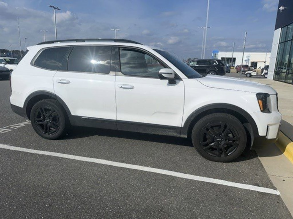 Glacial White Pearl 2024 Kia Telluride EX X-Line AWD 8-Speed Automatic 3.8L V6 DOHC 3.648 Axle Ratio, 3rd row seats: split-bench, 4-Wheel Disc Brakes, 6 Speakers, ABS brakes, Air Conditioning, Alloy wheels, AM/FM radio: SiriusXM, Apple CarPlay & Android Auto, Auto High-beam Headlights, Auto-dimming Rear-View mirror, Automatic temperature control, Brake assist, Bumpers: body-color, Carpet Floor Mats, Compass, Delay-off headlights, Driver door bin, Driver vanity mirror, Dual front impact airbags, Dual front side impact airbags, Electronic Stability Control, Emergency communication system: 911 Connect, Exterior Parking Camera Rear, Four wheel independent suspension, Front anti-roll bar, Front Bucket Seats, Front Center Armrest, Front dual zone A/C, Front reading lights, Fully automatic headlights, Heated & Ventilated Front Bucket Seats, Heated door mirrors, Heated front seats, Heated steering wheel, Illuminated entry, Knee airbag, Leather Seat Trim, Leather Shift Knob, Leather steering wheel, Low tire pressure warning, Navigation System, Occupant sensing airbag, Outside temperature display, Overhead airbag, Overhead console, Panic alarm, Passenger door bin, Passenger vanity mirror, Power door mirrors, Power driver seat, Power Liftgate, Power moonroof, Power passenger seat, Power steering, Power windows, Radio data system, Radio: AM/FM Display Audio System, Rear air conditioning, Rear anti-roll bar, Rear audio controls, Rear reading lights, Rear side impact airbag, Rear window defroster, Rear window wiper, Reclining 3rd row seat, Remote keyless entry, Roof rack: rails only, Security system, Smart Key w/ Push Button and Remote Start, Speed control, Speed-sensing steering, Split folding rear seat, Spoiler, Steering wheel mounted audio controls, Tachometer, Telescoping steering wheel, Tilt steering wheel, Traction control, Trip computer, Turn signal indicator mirrors, Variably intermittent wipers, and Ventilated front seats.