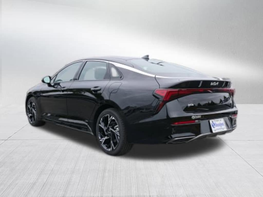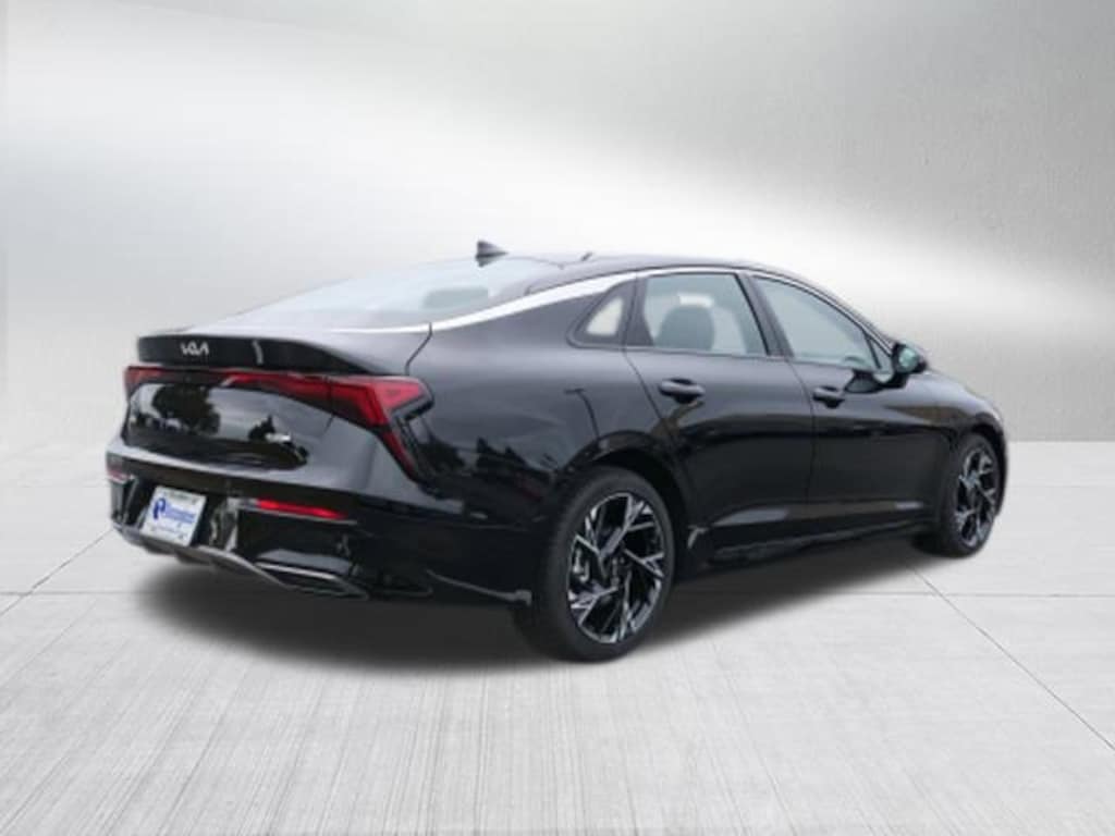Aurora Black Pearl 2025 Kia K5 GT-Line 4-Wheel Disc Brakes, 6 Speakers, ABS brakes, Air Conditioning, Alloy wheels, AM/FM radio: SiriusXM, Auto High-beam Headlights, Automatic temperature control, Brake assist, Bumpers: body-color, Carpeted Floor Mats, Delay-off headlights, Driver door bin, Driver vanity mirror, Dual front impact airbags, Dual front side impact airbags, Electronic Stability Control, Emergency communication system: Kia Connect (includes 1 year free trial), Four wheel independent suspension, Front anti-roll bar, Front Bucket Seats, Front Center Armrest, Front dual zone A/C, Front fog lights, Front reading lights, Fully automatic headlights, Heated door mirrors, Heated Front Bucket Seats, Heated front seats, Heated steering wheel, Illuminated entry, Knee airbag, Leather Shift Knob, Leather steering wheel, Low tire pressure warning, Navigation System, Occupant sensing airbag, Outside temperature display, Overhead airbag, Overhead console, Panic alarm, Passenger door bin, Passenger vanity mirror, Power door mirrors, Power driver seat, Power steering, Power windows, Radio data system, Radio: AM/FM Audio System, Rear anti-roll bar, Rear seat center armrest, Rear side impact airbag, Rear window defroster, Remote keyless entry, Security system, Speed control, Speed-sensing steering, Split folding rear seat, Sport steering wheel, Steering wheel mounted audio controls, Tachometer, Telescoping steering wheel, Tilt steering wheel, Traction control, Trip computer, Turn signal indicator mirrors, Variably intermittent wipers, and Wheels: 18" x 7.5J Gloss Black Machined Finish Alloy.
