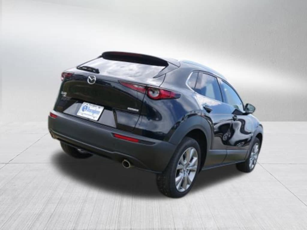 Jet Black Mica 2022 Mazda CX-30 2.5 S Premium Package 3.850 Axle Ratio, 4-Wheel Disc Brakes, 8 Speakers, ABS brakes, Air Conditioning, Alloy wheels, AppLink/Apple CarPlay and Android Auto, Auto High-beam Headlights, Automatic temperature control, Bose Audio Credit, Brake assist, Bumpers: body-color, Cargo Mat, Compass, Delay-off headlights, Driver door bin, Driver vanity mirror, Dual front impact airbags, Dual front side impact airbags, Electronic Stability Control, Emergency communication system: Mazda Connected Services (Automatic 911 Dialing), Exterior Parking Camera Rear, Front anti-roll bar, Front Bucket Seats, Front Center Armrest, Front dual zone A/C, Front reading lights, Front wheel independent suspension, Fully automatic headlights, Heads-Up Display, Heated Front Bucket Seats, Heated front seats, Illuminated entry, Knee airbag, Leather Seat Trim, Leather Shift Knob, Leather steering wheel, Low tire pressure warning, MAZDA CONNECT Infotainment System, Memory seat, Navigation system: MAZDA CONNECT, Occupant sensing airbag, Outside temperature display, Overhead airbag, Overhead console, Panic alarm, Passenger door bin, Passenger vanity mirror, Power door mirrors, Power driver seat, Power Liftgate, Power moonroof, Power steering, Power windows, Radio data system, Radio: AM/FM/HD Audio System w/Mazda Navigation, Rain sensing wipers, Rear seat center armrest, Rear window defroster, Rear window wiper, Remote keyless entry, Roof rack: rails only, Speed control, Speed-sensing steering, Split folding rear seat, Spoiler, Steering wheel mounted audio controls, Tachometer, Telescoping steering wheel, Tilt steering wheel, Traction control, Trip computer, Turn signal indicator mirrors, Variably intermittent wipers, and Wheels: 18" x 7J Aluminum Alloy.