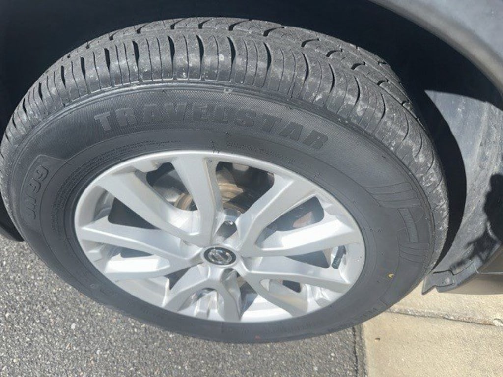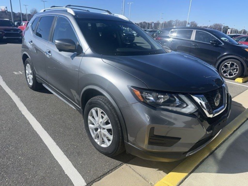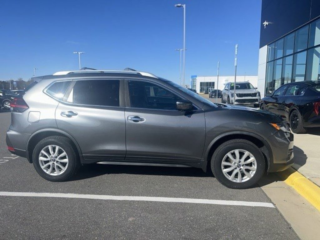 Gun Metallic 2018 Nissan Rogue SV AWD CVT with Xtronic 2.5L I4 DOHC 16V Premium Package (Heated Leather-Wrapped Steering Wheel, Intelligent Aroundview Monitor (I-AVM), Intelligent Cruise Control, Memory Driver Seat & Outside Mirrors, and Radio: AM/FM/CD/AUX NissanConnect w/Navigation), AWD, 17" Aluminum Alloy Wheels, 4-Wheel Disc Brakes, 6 Speakers, 6.386 Axle Ratio, ABS brakes, Air Conditioning, Alloy wheels, AM/FM radio: SiriusXM, Anti-whiplash front head restraints, Apple CarPlay/Android Auto, Automatic temperature control, Black Splash Guards (Set of 4), Blind Spot Warning, Brake assist, Bumpers: body-color, CD player, Chrome Rear Bumper Protector, Cloth Seat Trim, Delay-off headlights, Driver door bin, Driver vanity mirror, Dual front impact airbags, Dual front side impact airbags, Electronic Stability Control, Floor Mats & 2-PC Cargo Area Protector, Four wheel independent suspension, Front anti-roll bar, Front Bucket Seats, Front Center Armrest w/Storage, Front dual zone A/C, Front reading lights, Fully automatic headlights, Heated door mirrors, Heated front seats, Illuminated entry, Leather Shift Knob, Low tire pressure warning, Occupant sensing airbag, Outside temperature display, Overhead airbag, Overhead console, Panic alarm, Passenger door bin, Passenger vanity mirror, Power door mirrors, Power driver seat, Power Liftgate, Power steering, Power windows, Quick Comfort Heated Front Bucket Seats, Radio data system, Radio: AM/FM/CD/AUX, Rear anti-roll bar, Rear seat center armrest, Rear window defroster, Rear window wiper, Remote keyless entry, Roof rack: rails only, Security system, Speed control, Speed-sensing steering, Split folding rear seat, Spoiler, Steering wheel mounted audio controls, Tachometer, Telescoping steering wheel, Tilt steering wheel, Traction control, Trip computer, Turn signal indicator mirrors, and Variably intermittent wipers.