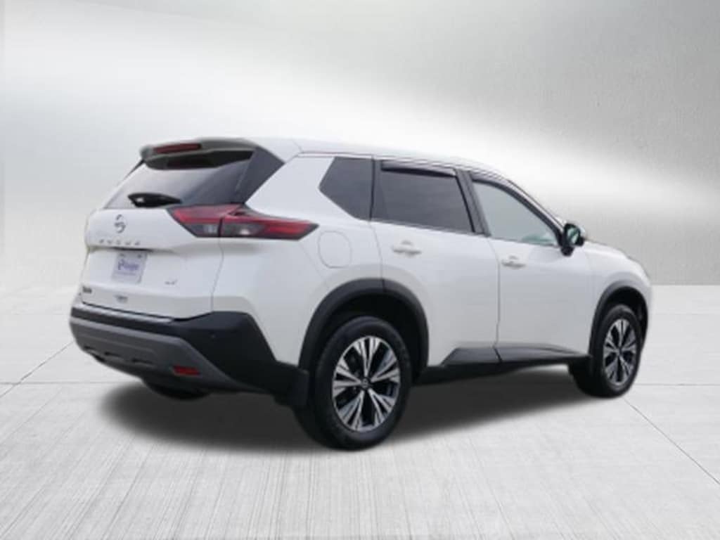 Recent Arrival! Pearl White Tricoat 2021 Nissan Rogue SV 2.5L I4 DOHC 16V CVT with Xtronic FWD 18 Aluminum Alloy Wheels, 4-Wheel Disc Brakes, 5.604 Axle Ratio, 6 Speakers, ABS brakes, Air Conditioning, Alloy wheels, AM/FM Radio, AM/FM radio, Auto High-beam Headlights, Automatic temperature control, Black Splash Guards (Set of 4), Brake assist, Bumpers: body-color, Chrome Rear Bumper Protector, Cloth Seat Trim, Delay-off headlights, Driver door bin, Driver vanity mirror, Dual front impact airbags, Dual front side impact airbags, Electronic Stability Control, Emergency communication system: NissanConnect Services, First Aid Kit, Floor Mats w/1-Piece Cargo Area Protector, Four wheel independent suspension, Front anti-roll bar, Front Bucket Seats, Front Center Armrest, Front dual zone A/C, Front reading lights, Fully automatic headlights, Heated door mirrors, Illuminated entry, Knee airbag, Low tire pressure warning, NissanConnect featuring Apple CarPlay and Android Auto, Occupant sensing airbag, Outside temperature display, Overhead airbag, Overhead console, Panic alarm, Passenger door bin, Passenger vanity mirror, Power door mirrors, Power driver seat, Power steering, Power windows, Radio data system, Rear anti-roll bar, Rear Parking Sensors, Rear seat center armrest, Rear side impact airbag, Rear window defroster, Rear window wiper, Remote keyless entry, Security system, Speed control, Speed-Sensitive Wipers, Split folding rear seat, Spoiler, Steering wheel mounted audio controls, Tachometer, Telescoping steering wheel, Tilt steering wheel, Traction control, Trip computer, Turn signal indicator mirrors, and Variably intermittent wipers.