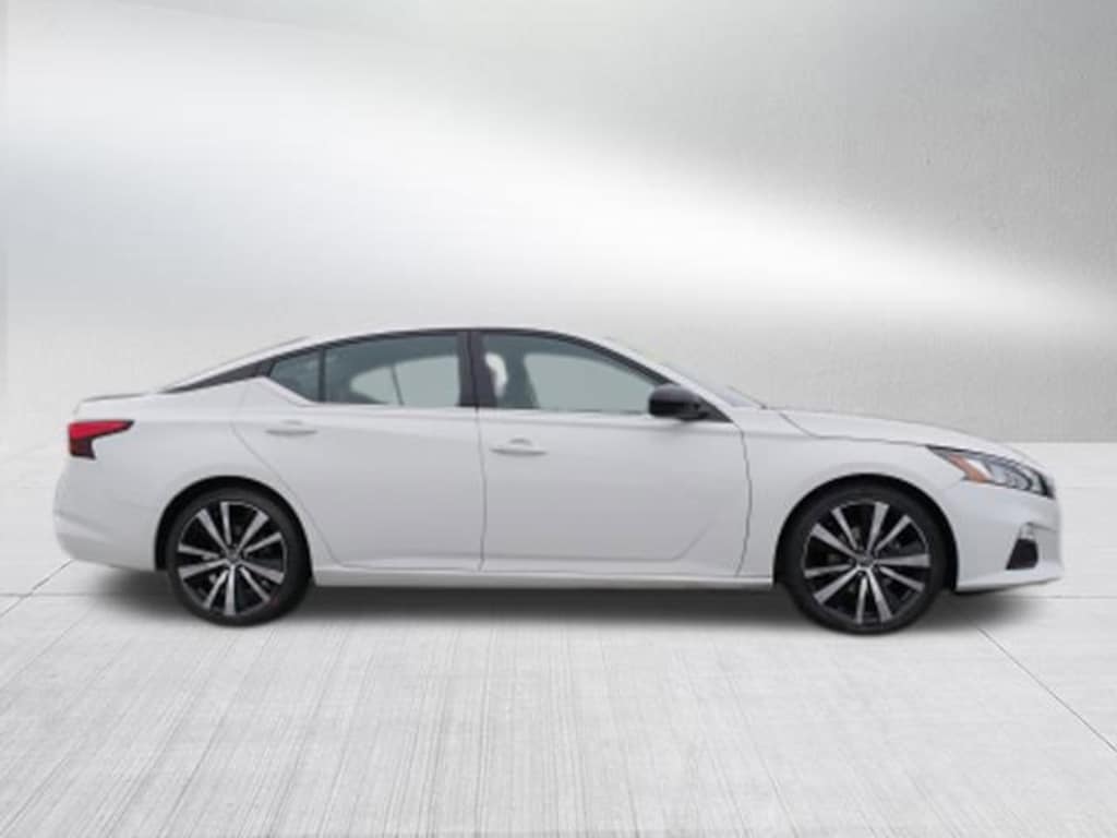 Glacier White 2022 Nissan Altima 2.5 SR 2.5L 4-Cylinder DOHC 16V CVT with Xtronic FWD CVT with Xtronic, 4-Wheel Disc Brakes, 6 Speakers, ABS brakes, Air Conditioning, Alloy wheels, AM/FM radio: SiriusXM, Auto High-beam Headlights, Blind Spot Warning, Brake assist, Bumpers: body-color, Delay-off headlights, Driver door bin, Driver vanity mirror, Dual front impact airbags, Dual front side impact airbags, Electronic Stability Control, Four wheel independent suspension, Front anti-roll bar, Front Bucket Seats, Front Center Armrest, Front reading lights, Front Sport Bucket Seats, Fully automatic headlights, Illuminated entry, Knee airbag, Leather Shift Knob, Low tire pressure warning, NissanConnect featuring Apple CarPlay and Android Auto, Occupant sensing airbag, Outside temperature display, Overhead airbag, Overhead console, Panic alarm, Passenger door bin, Passenger vanity mirror, Power door mirrors, Power driver seat, Power steering, Power windows, Radio data system, Radio: AM/FM Audio System, Rear anti-roll bar, Rear Parking Sensors, Rear reading lights, Rear seat center armrest, Rear side impact airbag, Rear window defroster, Remote keyless entry, Security system, Speed control, Speed-sensing steering, Speed-Sensitive Wipers, Split folding rear seat, Sport Seat Trim, Sport steering wheel, SR Floor Mats/Trunk Mat/Hideaway Nets, Steering wheel mounted audio controls, Tachometer, Telescoping steering wheel, Tilt steering wheel, Traction control, Trip computer, Variably intermittent wipers, and Wheels: 19 Machined Alloy.