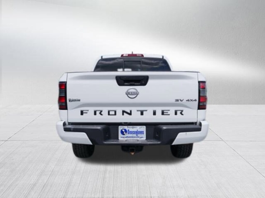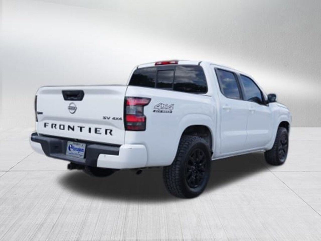 Glacier White 2022 Nissan Frontier SV 3.8L DI DOHC 24V V6 9-Speed Automatic 4WD 4WD, 17 Alloy Wheels, 3.692 Axle Ratio, 4-Wheel Disc Brakes, 6 Speakers, ABS brakes, Air Conditioning, Alloy wheels, AM/FM radio: SiriusXM, Anti-whiplash front head restraints, Apple CarPlay/Android Auto, Auto High-beam Headlights, Brake assist, Bumpers: body-color, Delay-off headlights, Driver door bin, Driver vanity mirror, Dual front impact airbags, Dual front side impact airbags, Electronic Stability Control, Floor Mats, Front anti-roll bar, Front Bucket Seats, Front Center Armrest, Front reading lights, Front wheel independent suspension, Fully automatic headlights, Illuminated entry, Knee airbag, Low tire pressure warning, Occupant sensing airbag, Overhead airbag, Panic alarm, Passenger door bin, Passenger vanity mirror, Power door mirrors, Power driver seat, Power steering, Power windows, Premium Cloth Seat Trim, Radio data system, Radio: SXM/AM/FM/AUX/USB Audio System w/6 Speakers, Rear anti-roll bar, Rear seat center armrest, Rear step bumper, Remote keyless entry, Security system, Speed control, Speed-sensing steering, Split folding rear seat, Steering wheel mounted audio controls, Tachometer, Tilt steering wheel, Traction control, Trip computer, Variably intermittent wipers, and Voltmeter.