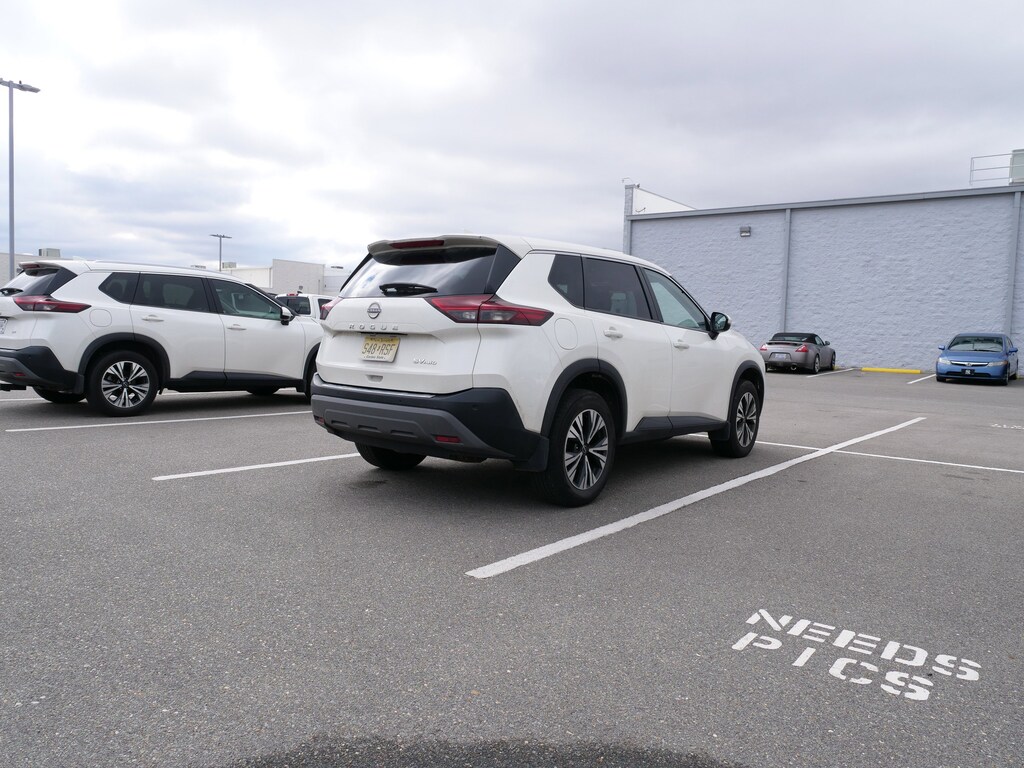 Pearl White Tricoat 2023 Nissan Rogue SV 1.5L I3 Turbocharged DOHC 12V LEV3-ULEV50 201hp CVT with Xtronic AWD AWD, 18 Aluminum Alloy Wheels, 4-Wheel Disc Brakes, 5.604 Axle Ratio, 6 Speakers, ABS brakes, Air Conditioning, Alloy wheels, AM/FM Radio, AM/FM radio: SiriusXM, Auto High-beam Headlights, Automatic temperature control, Black Splash Guards (Set of 4), Brake assist, Bumpers: body-color, Chrome Rear Bumper Protector, Cloth Seat Trim, Delay-off headlights, Driver door bin, Driver vanity mirror, Dual front impact airbags, Dual front side impact airbags, Electronic Stability Control, Emergency communication system: NissanConnect Services, First Aid Kit, Floor Mats w/1-Piece Cargo Area Protector, Four wheel independent suspension, Front anti-roll bar, Front Bucket Seats, Front Center Armrest, Front dual zone A/C, Front reading lights, Fully automatic headlights, Heated door mirrors, Illuminated entry, Knee airbag, Low tire pressure warning, NissanConnect featuring Apple CarPlay and Android Auto, Occupant sensing airbag, Outside temperature display, Overhead airbag, Overhead console, Panic alarm, Passenger door bin, Passenger vanity mirror, Power door mirrors, Power driver seat, Power steering, Power windows, Radio data system, Rear anti-roll bar, Rear Parking Sensors, Rear seat center armrest, Rear side impact airbag, Rear window defroster, Rear window wiper, Remote keyless entry, Security system, Speed control, Speed-Sensitive Wipers, Split folding rear seat, Spoiler, Steering wheel mounted audio controls, Tachometer, Telescoping steering wheel, Tilt steering wheel, Traction control, Trip computer, Turn signal indicator mirrors, and Variably intermittent wipers.