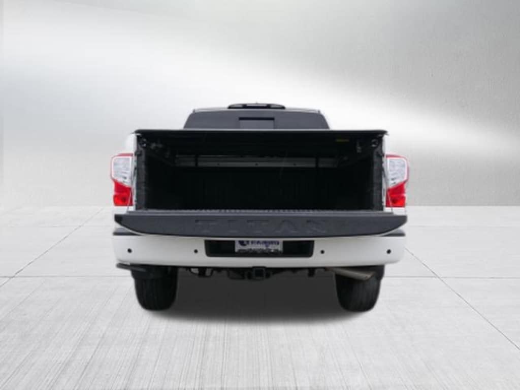 Glacier White 2023 Nissan Titan SV 5.6L V8 DOHC 32V 400hp 9-Speed Automatic 4WD SV Convenience Package (120V/12V Outlets In Back Of Center Console, 2 Illuminated USB-A Ports In Back Of Center Console, Auto-Dimming Rear-View Mirror, Dedicated Cell Phone Holder, Dual Illuminated Vanity Mirror Front Sun Visors, Dual Zone Automatic HVAC, Front & Rear Parking Sensors, Heated Front Captain's Chairs, Intelligent Key System, Leather-Wrapped Steering Wheel, Mood Light, NissanConnect Services, Overhead Console w/Sunglass Holder, Power Sliding Rear Window w/Defogger, Rear HVAC Vents, Remote Engine Start on Key Fob, and Wi-Fi Hotspot), SV Tow Package (4-Pin/7-Pin Wiring Harness Connector (Rear Bumper), Heated Manually Extendable Tow Mirrors, Puddle Lamps, Receiver Hitch, Trailer Brake Controller, and Trailer Light Check Function On Key Fob), SV Utility Package (120V Outlet in Bed, Auto-Dimming Rearview Mirror w/UGDO, Electronic Locking Tailgate, Flat Floor Function w/Tie Down Hooks, LED Tailgate Area Illumination, LED Under Rail Bed Lighting, Rain Sensing Wipers, Rear Utility Bed Step, Spray-On Bedliner, Universal Garage Door Opener, and Utilitrack System w/4 Tie-Down Cleats), 4WD, 3.69 Axle Ratio, 4-Wheel Disc Brakes, 6 Speakers, ABS brakes, Air Conditioning, Alloy wheels, AM/FM radio: SiriusXM, Auto High-beam Headlights, Bed Assist Grip, Blind Spot Warning, Brake assist, Bumpers: chrome, Carpet Floor Mats (L95), Cloth Seat Trim w/Vinyl Bolsters, Driver door bin, Driver vanity mirror, Dual front impact airbags, Dual front side impact airbags, Electronic Stability Control, Front anti-roll bar, Front Center Armrest w/Storage, Front reading lights, Front Split Bench Seat (40/20/40), Front wheel independent suspension, Fully automatic headlights, Heated door mirrors, Illuminated entry, Knee airbag, Loop Side Steps, Low tire pressure warning, NissanConnect featuring Apple CarPlay and Android Auto, Occupant sensing airbag, Outside temperature display, Overhead airbag, Overhead console, Panic alarm, Passenger door bin, Passenger vanity mirror, Power door mirrors, Power steering, Power windows, Radio data system, Radio: NissanConnect AM/FM, Rear anti-roll bar, Rear Bumper Step w/Electronic Tailgate Lock, Rear Parking Sensors, Rear reading lights, Rear seat center armrest, Rear step bumper, Rear window defroster, Remote keyless entry, Security system, Speed control, Speed-sensing steering, Speed-Sensitive Wipers, Splash Guards, Split folding rear seat, Steering wheel mounted audio controls, Tachometer, Telescoping steering wheel, Tilt steering wheel, Traction control, Trip computer, Variably intermittent wipers, Voltmeter, and Wheels: 18 x 8 Painted & Machined Alloy.