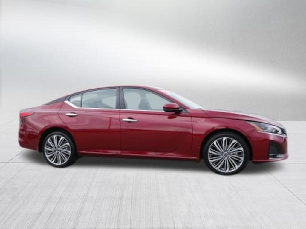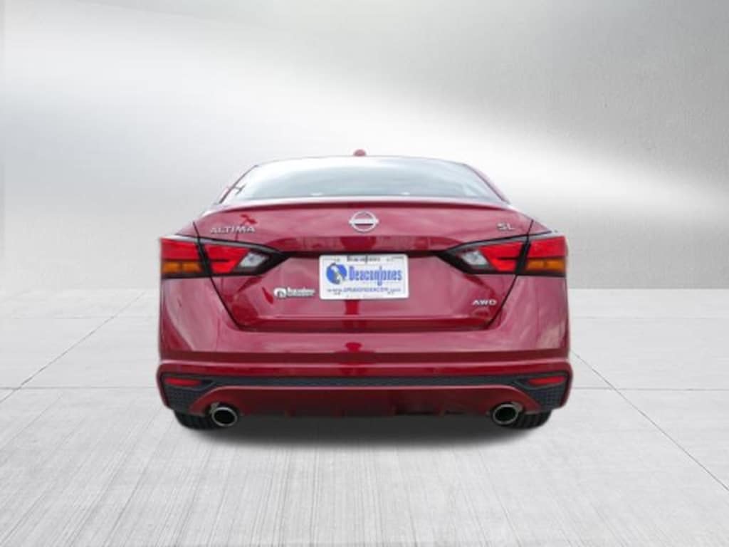 Scarlet Ember 2024 Nissan Altima 2.5 SL 2.5L 4-Cylinder DOHC 16V CVT with Xtronic AWD CVT with Xtronic, 19 Unique Alloy Wheels, 4-Wheel Disc Brakes, 9 Speakers, ABS brakes, Air Conditioning, Alloy wheels, AM/FM radio: SiriusXM, Auto High-beam Headlights, Automatic temperature control, Blind Spot Warning, Body-Colored Splash Guards, Brake assist, Bumpers: body-color, Compass, Delay-off headlights, Driver door bin, Driver vanity mirror, Dual front impact airbags, Dual front side impact airbags, Electronic Stability Control, Emergency communication system: NissanConnect Services, Floor Mats/Trunk Mat/Hideaway Net, Four wheel independent suspension, Front anti-roll bar, Front Bucket Seats, Front Center Armrest, Front dual zone A/C, Front reading lights, Fully automatic headlights, Heated Front Bucket Seats, Heated front seats, Heated steering wheel, Illuminated entry, Illuminated Kick Plates, Knee airbag, Leather Shift Knob, Leather steering wheel, Leather-Appointed Seat Trim, Low tire pressure warning, Navigation System, NissanConnect featuring Apple CarPlay, Occupant sensing airbag, Outside temperature display, Overhead airbag, Overhead console, Panic alarm, Passenger door bin, Passenger vanity mirror, Power door mirrors, Power driver seat, Power moonroof, Power passenger seat, Power steering, Power windows, Premium Paint - Pearl White, Radio data system, Radio: AM/FM w/Bose Premium Sound System, Rear anti-roll bar, Rear Parking Sensors, Rear reading lights, Rear seat center armrest, Rear side impact airbag, Rear window defroster, Remote keyless entry, Security system, Speed control, Speed-sensing steering, Speed-Sensitive Wipers, Split folding rear seat, Steering wheel mounted audio controls, Tachometer, Telescoping steering wheel, Tilt steering wheel, Traction control, Trip computer, Trunk Organizer Tray, Turn signal indicator mirrors, USB Charging Cable Set - Nissan, and Variably intermittent wipers.