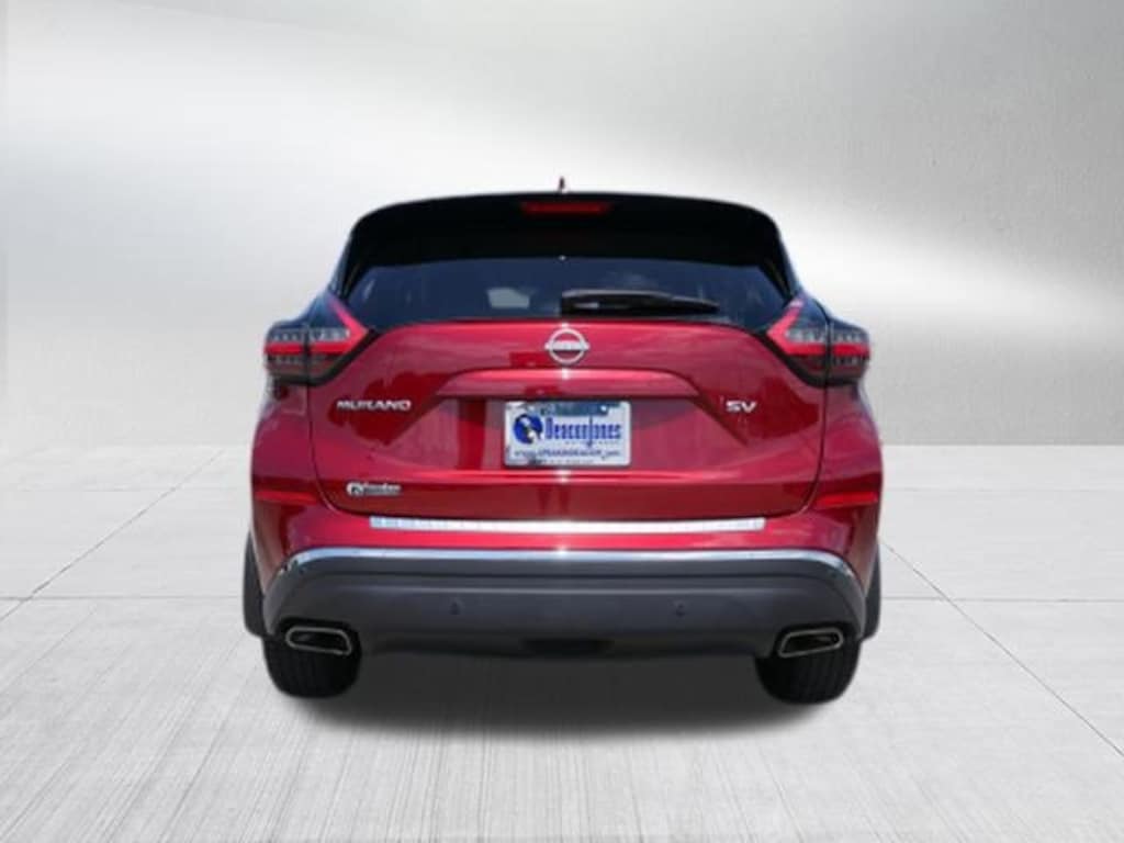 Scarlet Ember Tintcoat 2024 Nissan Murano SV 3.5L V6 DOHC 24V CVT with Xtronic FWD CVT with Xtronic, 4-Wheel Disc Brakes, 4.667 Axle Ratio, 6 Speakers, ABS brakes, Air Conditioning, Alloy wheels, AM/FM radio: SiriusXM, AM/FM/CD/MP3/WMA Audio System, Auto High-beam Headlights, Auto-dimming Rear-View mirror, Automatic temperature control, Blind Spot Warning, Brake assist, Bumpers: body-color, Carpeted Floor Mats & Carpeted Cargo Mat, CD player, Child-Seat-Sensing Airbag, Compass, Delay-off headlights, Driver door bin, Driver vanity mirror, Dual front impact airbags, Dual front side impact airbags, Electronic Stability Control, Four wheel independent suspension, Front anti-roll bar, Front Bucket Seats, Front Center Armrest, Front dual zone A/C, Front fog lights, Front reading lights, Fully automatic headlights, Heated door mirrors, Heated Front Bucket Seats, Heated front seats, Illuminated entry, Knee airbag, Leather steering wheel, Leatherette-Appointed Seat Trim, Low tire pressure warning, NissanConnect featuring Apple CarPlay and Android Auto, Occupant sensing airbag, Outside temperature display, Overhead airbag, Overhead console, Panic alarm, Passenger door bin, Passenger vanity mirror, Power door mirrors, Power driver seat, Power passenger seat, Power steering, Power windows, Radio data system, Rear anti-roll bar, Rear Bumper Protector, Rear reading lights, Rear seat center armrest, Rear side impact airbag, Rear window defroster, Rear window wiper, Remote keyless entry, Security system, Special Paint - Pearl White Tricoat, Speed control, Speed-sensing steering, Speed-Sensitive Wipers, Splash Guards (B92), Split folding rear seat, Spoiler, Steering wheel mounted audio controls, Tachometer, Telescoping steering wheel, Tilt steering wheel, Traction control, Trip computer, Turn signal indicator mirrors, Variably intermittent wipers, and Wheels: 18 Machined Aluminum-Alloy.