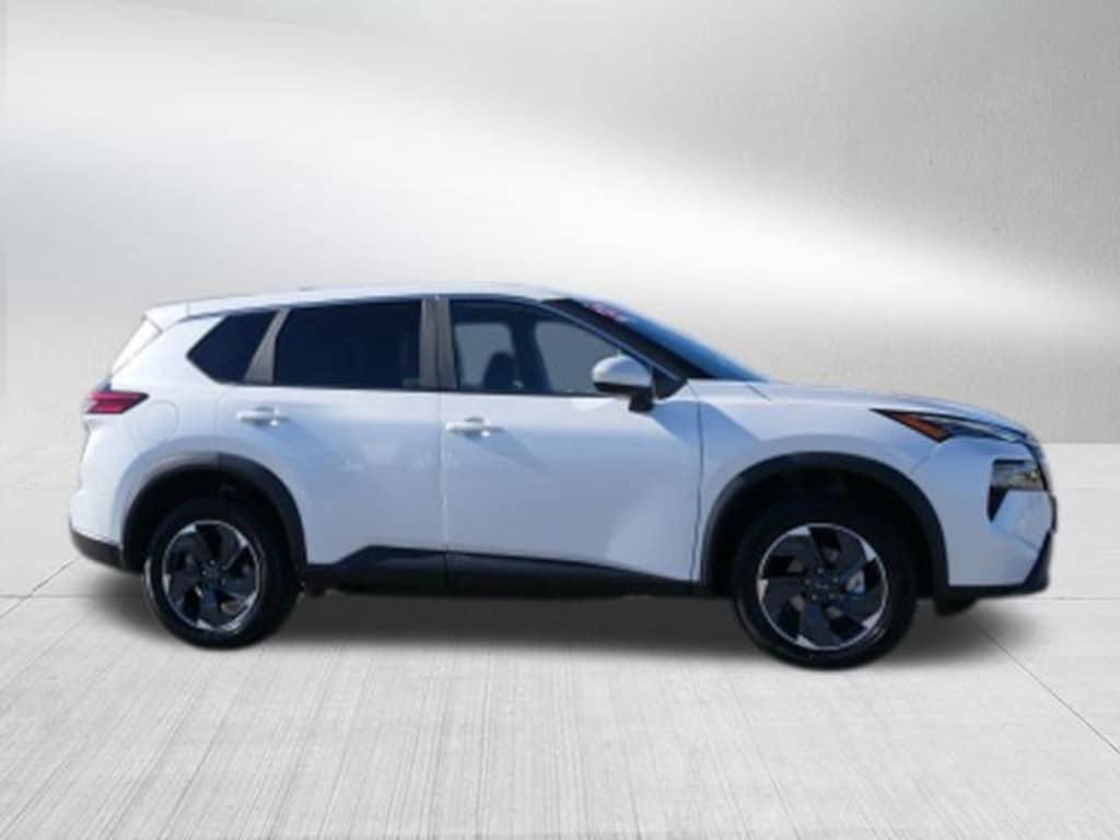 Everest White Pearl 2024 Nissan Rogue SV 1.5L DOHC CVT with Xtronic AWD AWD, 4-Wheel Disc Brakes, 5.676 Axle Ratio, 6 Speakers, ABS brakes, Air Conditioning, Alloy wheels, AM/FM radio: SiriusXM, Auto High-beam Headlights, Automatic temperature control, Brake assist, Bumpers: body-color, Cloth Seat Trim w/Patterned Inserts, Delay-off headlights, Driver door bin, Driver vanity mirror, Dual front impact airbags, Dual front side impact airbags, Electronic Stability Control, Emergency communication system: NissanConnect Services, First Aid Kit, Floor Mats w/1-Piece Cargo Area Protector, Four wheel independent suspension, Front anti-roll bar, Front Bucket Seats, Front Center Armrest, Front dual zone A/C, Front reading lights, Fully automatic headlights, Heated door mirrors, Illuminated entry, Knee airbag, Low tire pressure warning, NissanConnect featuring Apple CarPlay and Android Auto, Occupant sensing airbag, Outside temperature display, Overhead airbag, Overhead console, Panic alarm, Passenger door bin, Passenger vanity mirror, Power door mirrors, Power driver seat, Power Liftgate, Power steering, Power windows, Radio data system, Radio: AM/FM NissanConnect, Rear anti-roll bar, Rear Parking Sensors, Rear seat center armrest, Rear side impact airbag, Rear window defroster, Rear window wiper, Remote keyless entry, Speed control, Speed-Sensitive Wipers, Split folding rear seat, Spoiler, Steering wheel mounted audio controls, Tachometer, Telescoping steering wheel, Tilt steering wheel, Traction control, Trip computer, Variably intermittent wipers, and Wheels: 18 Dark Painted Machine Finished Alloy.