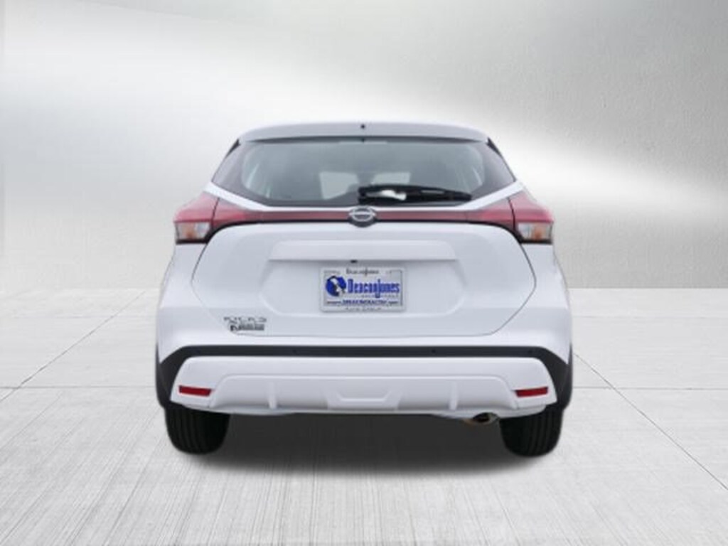 Fresh Powder 2025 Nissan Kicks Play S 1.6L 4-Cylinder DOHC 16V CVT FWD 16 Steel Wheels with Full Covers, 6 Speakers, ABS brakes, Air Conditioning, AM/FM Audio System, AM/FM radio, Apple CarPlay/Android Auto, Auto High-beam Headlights, Blind Spot Warning, Brake assist, Bumpers: body-color, Carpeted Floor Mats with Cargo Mat, Center Armrest with Storage, Cloth Seat Trim with Single Stitch, Driver door bin, Driver vanity mirror, Driver's Seat Mounted Armrest, Dual front impact airbags, Dual front side impact airbags, Electronic Stability Control, Front anti-roll bar, Front Bucket Seats, Front reading lights, Front wheel independent suspension, Fully automatic headlights, Illuminated entry, Knee airbag, Low tire pressure warning, Occupant sensing airbag, Outside temperature display, Overhead airbag, Panic alarm, Passenger door bin, Passenger vanity mirror, Power door mirrors, Power steering, Power windows, Radio data system, Rear Parking Sensors, Rear reading lights, Rear side impact airbag, Rear window defroster, Rear window wiper, Remote keyless entry, Speed control, Splash Guards Grain (4 Piece), Split folding rear seat, Sport steering wheel, Steering wheel mounted audio controls, Tachometer, Telescoping steering wheel, Tilt steering wheel, Traction control, Trip computer, and Variably intermittent wipers.