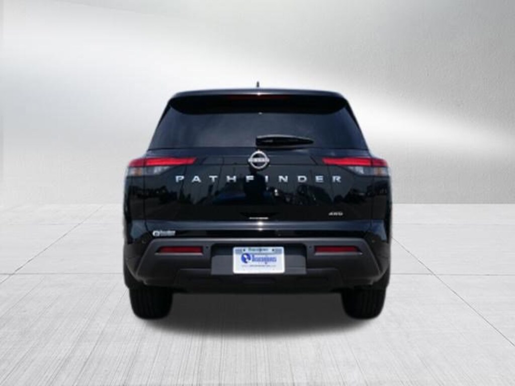 Super Black 2025 Nissan Pathfinder S 3.5L V6 DOHC 9-Speed Automatic 4WD 4WD, 3rd row seats: bench, 4-Wheel Disc Brakes, 6 Speakers, ABS brakes, Air Conditioning, Alloy wheels, AM/FM radio: SiriusXM, Auto High-beam Headlights, Automatic temperature control, Bench Seat Carpeted Floor Mats (set of 4), Black Splash Guards (set of 4), Blind Spot Warning, Brake assist, Bumpers: body-color, Cloth Seating Surfaces, Delay-off headlights, Driver door bin, Driver vanity mirror, Dual front impact airbags, Dual front side impact airbags, Electronic Stability Control, Four wheel independent suspension, Front anti-roll bar, Front Bucket Seats, Front Center Armrest, Front dual zone A/C, Front reading lights, Fully automatic headlights, Illuminated entry, Knee airbag, Low tire pressure warning, Nissan USB Charging Cable Set, NissanConnect featuring Apple CarPlay and Android Auto, Occupant sensing airbag, Outside temperature display, Overhead airbag, Overhead console, Panic alarm, Passenger door bin, Passenger vanity mirror, Power door mirrors, Power steering, Power windows, Radio data system, Radio: AM/FM Audio System with NissanConnect, Rear air conditioning, Rear anti-roll bar, Rear Parking Sensors, Rear reading lights, Rear side impact airbag, Rear window defroster, Rear window wiper, Reclining 3rd row seat, Remote keyless entry, Security system, Speed control, Speed-sensing steering, Split folding rear seat, Spoiler, Steering wheel mounted audio controls, Tachometer, Telescoping steering wheel, Tilt steering wheel, Traction control, Trip computer, Variably intermittent wipers, and Wheels: 18 x 8J Painted Alloy.